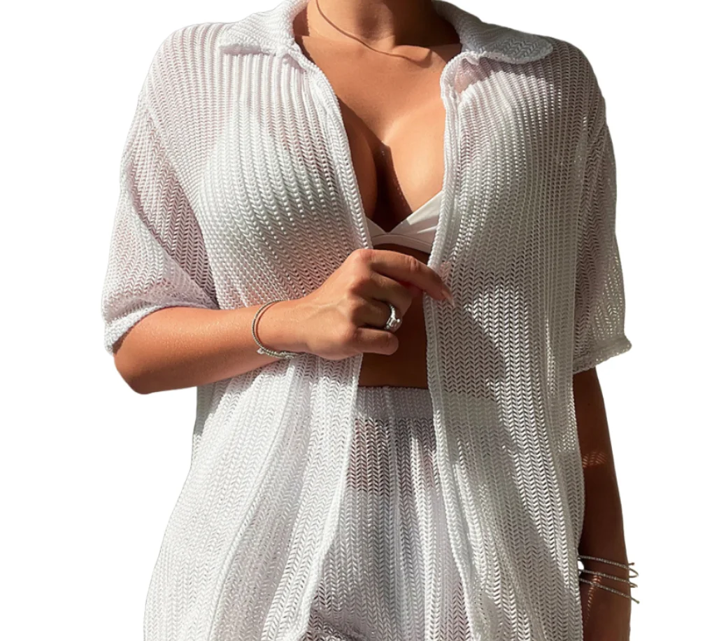 New Style White Color Hollowed-out Coverup Top and Separate Briefs Beach Bikini European and American Style Swim Dress for Women