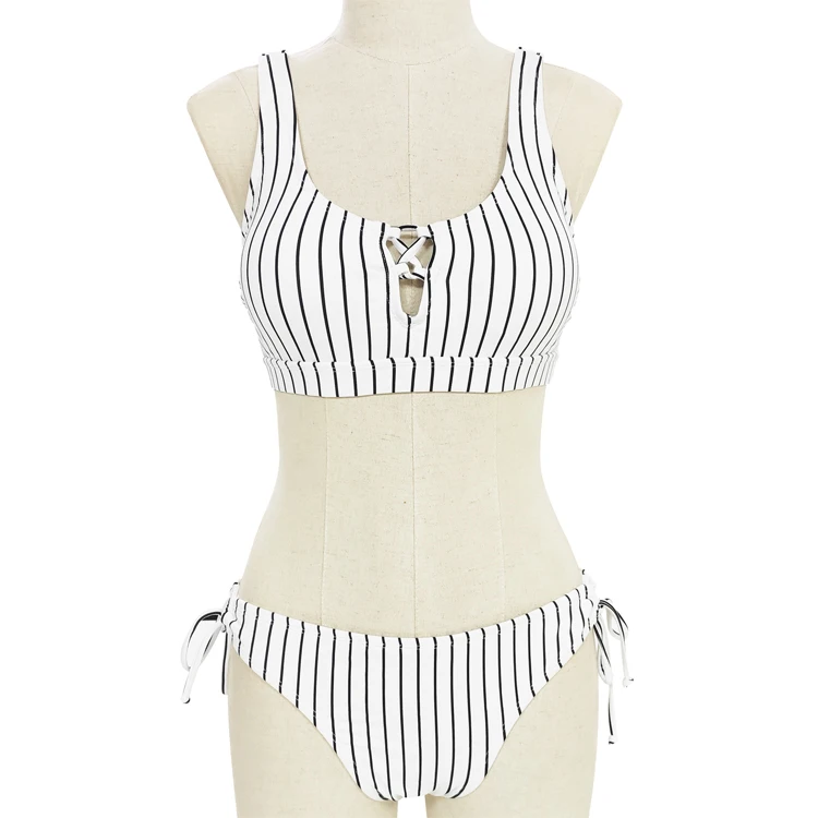 Custom Striped Swimsuit Beachwear for Ladies Breathable Two Piece Swimwear Bathing Suit for Women's Bikinis Set