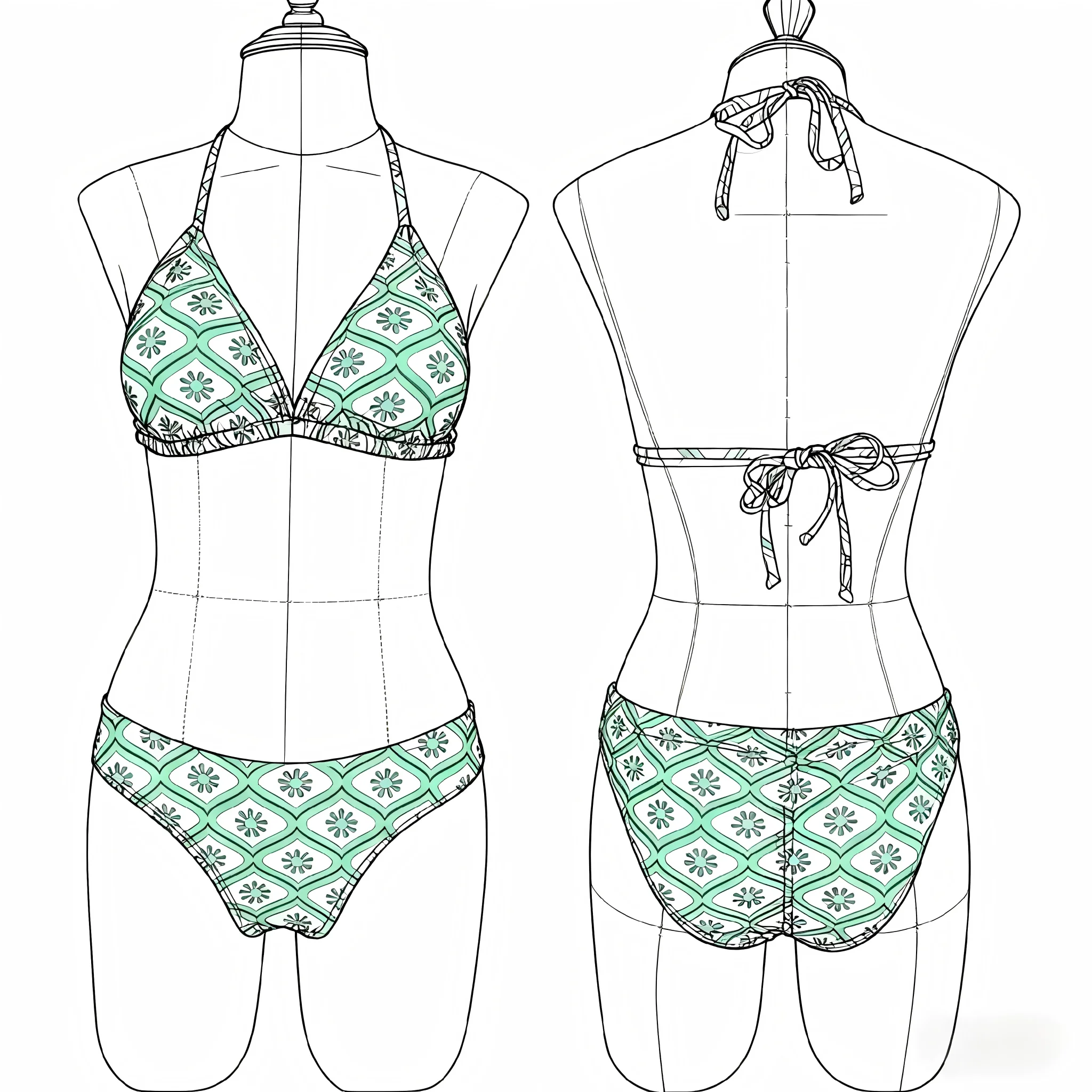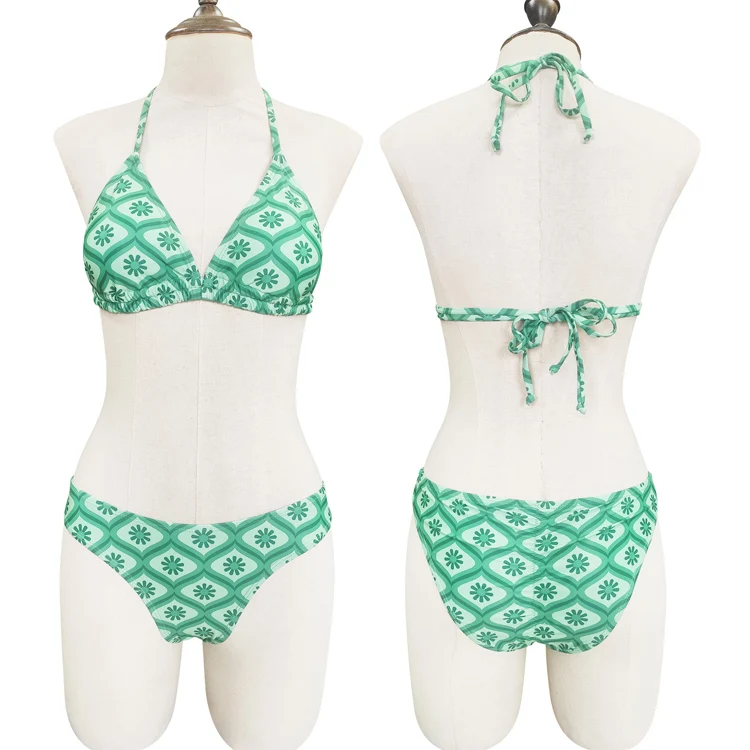 OEM Custom Women's Two-Piece Vintage Bikinis Green Floral Halter Bikini Retro Summer Beach Style New Trendy Swimwear Beachwear