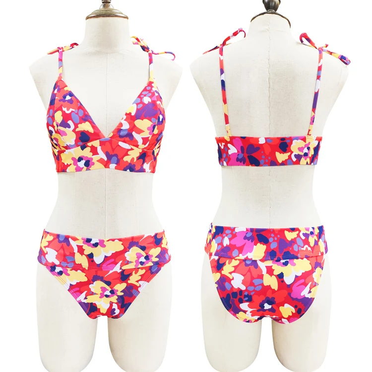 New Trend Women's Two Piece Floral Bikinis Triangle Crop Top Tie Shoulder Straps Vibrant Bold Floral Pattern Custom Logo Bikini