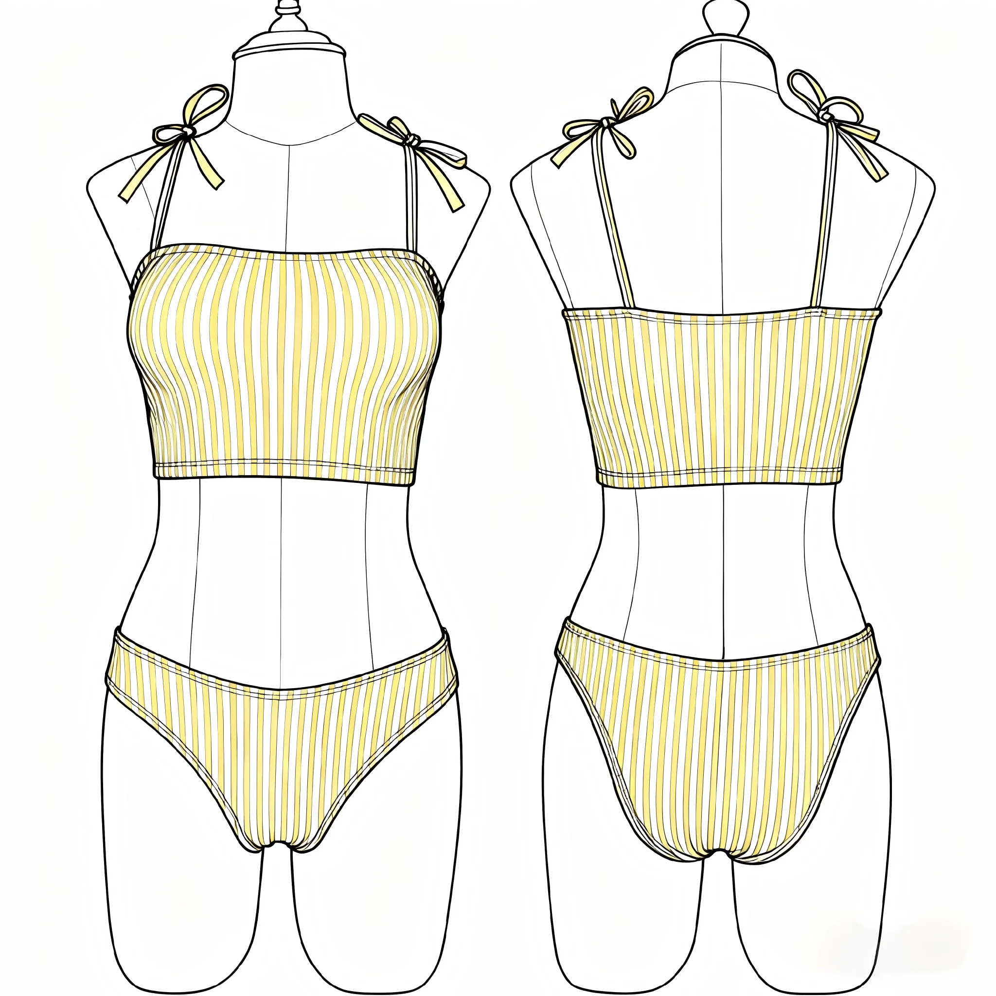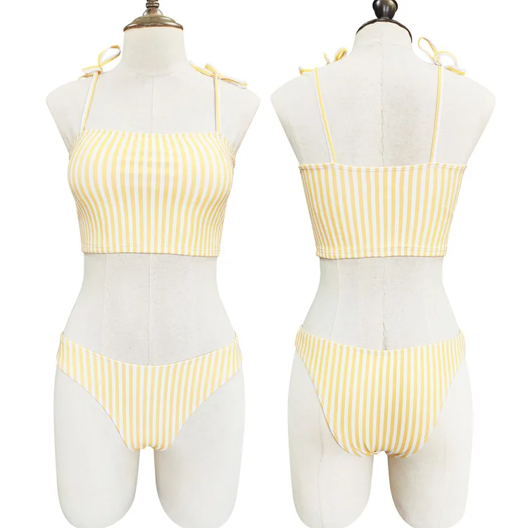 OEM Custom Women's Two Piece Bikini Sets Crop Top with Tie Shoulder Spaghetti Straps Vertical Stripe Pattern Fashion Beachwear