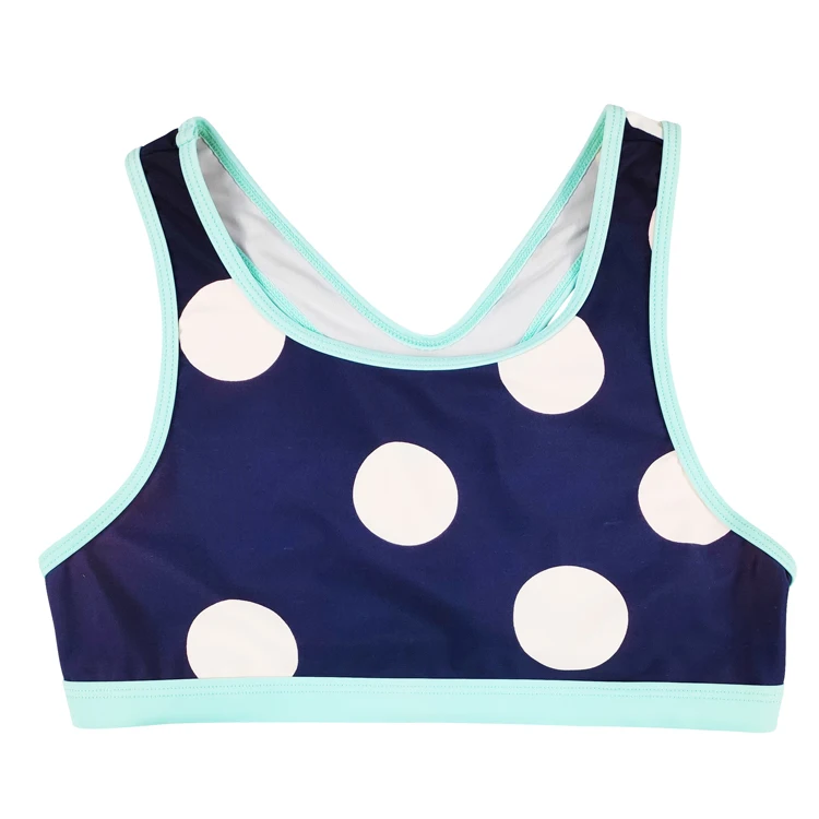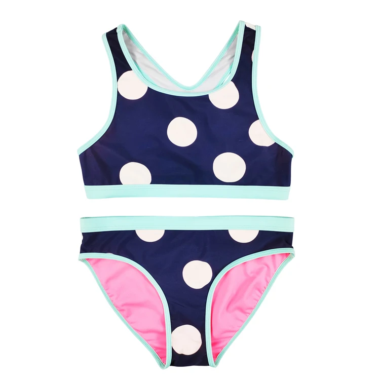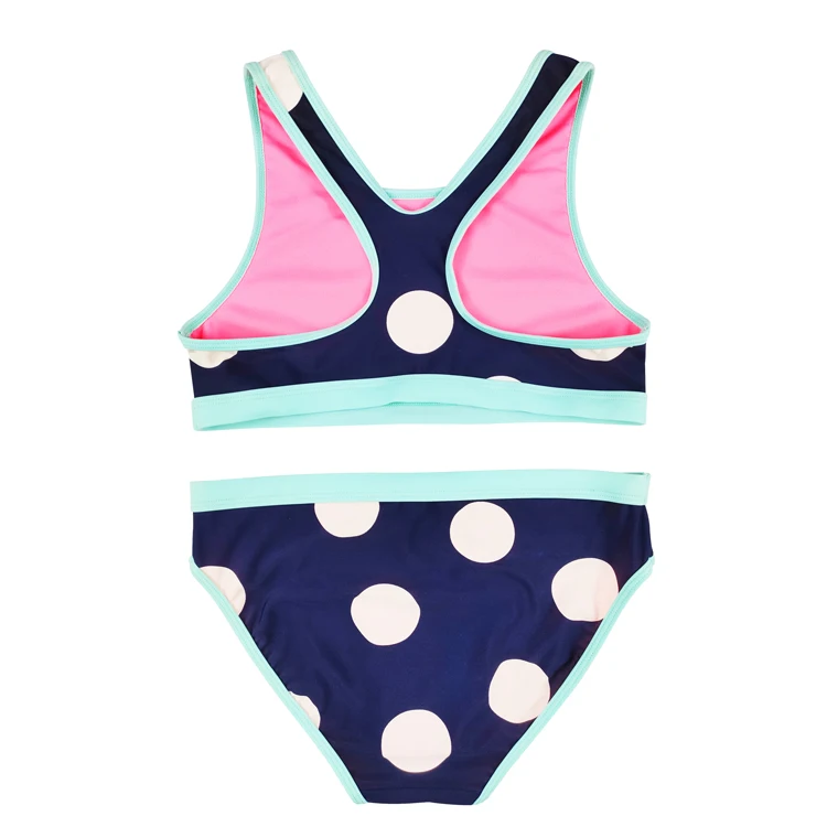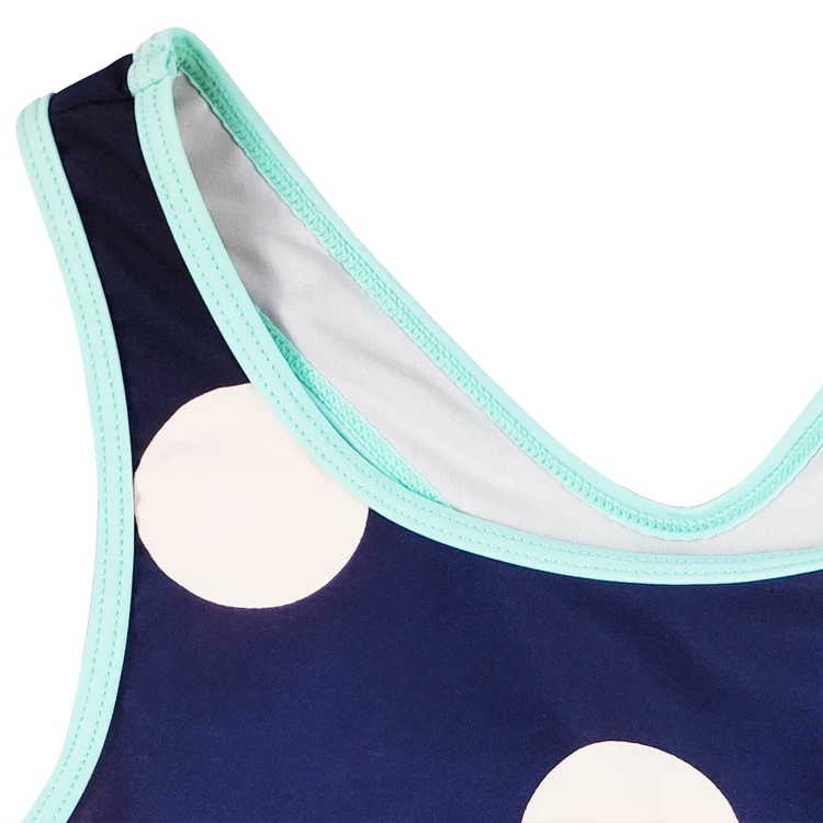 Custom Kids Swimwear Beachwear with White Dots Breathable Two Piece Swimming Bathing Suit for Girls