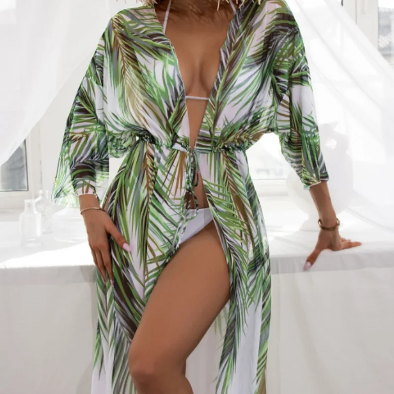 Custom Sun Protection Shawl Printed UV Protection Beach & Swimsuit Caftans Casual Sleeve Tie Dye Beach Cover up for Women
