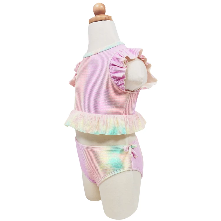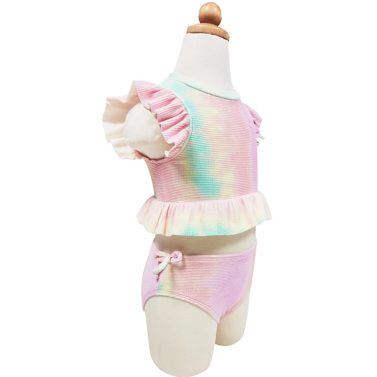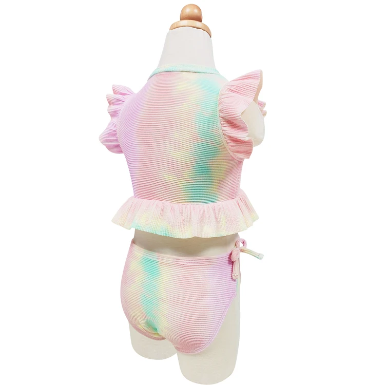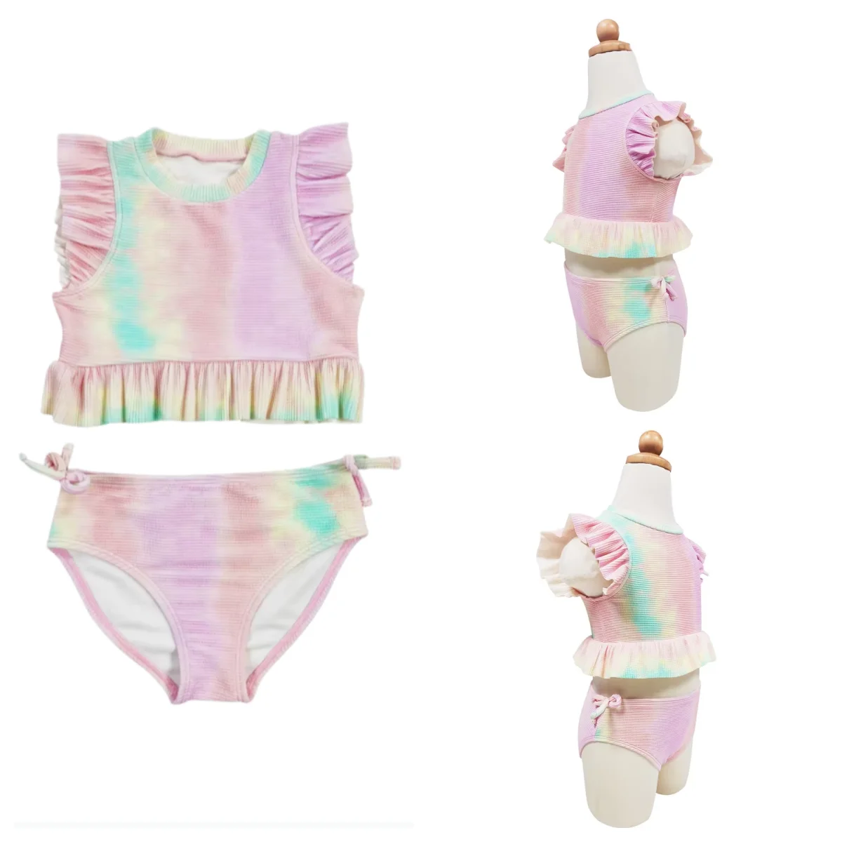 High-quality Girls' Swimwear Made of Rainbow-colored Rib Fabric with Premium Sun protection Kid's Bikini UPF 50 +