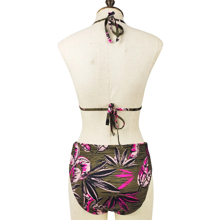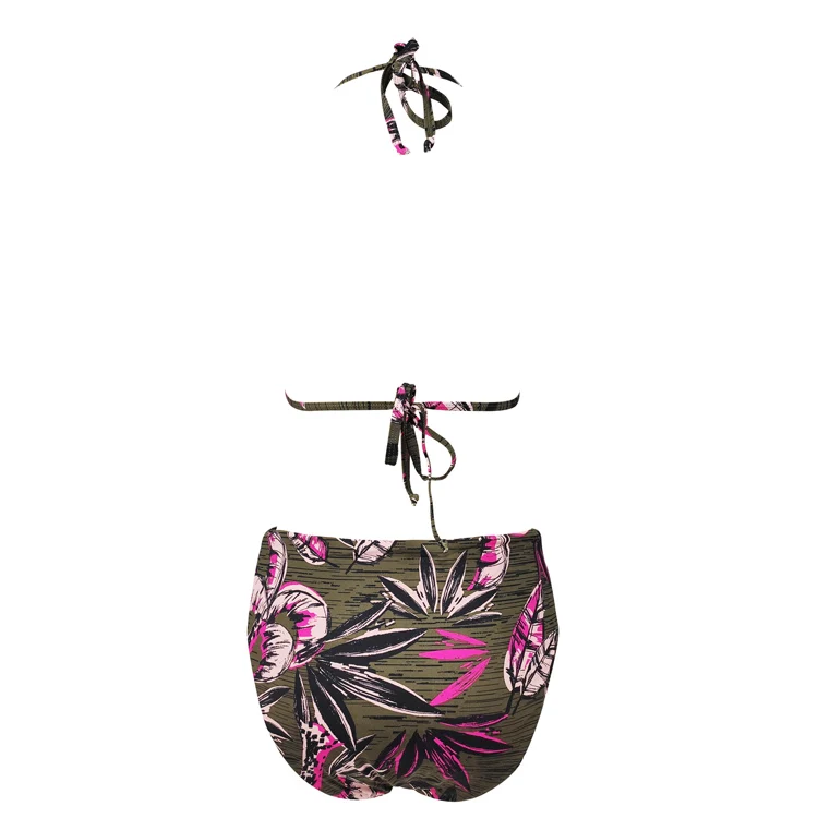 Floral Design Beachwear Swimsuit for Ladies Sexy Backless Micro Bra Bathing Suit Hawaiian Style Two Piece Women's Bikinis Set