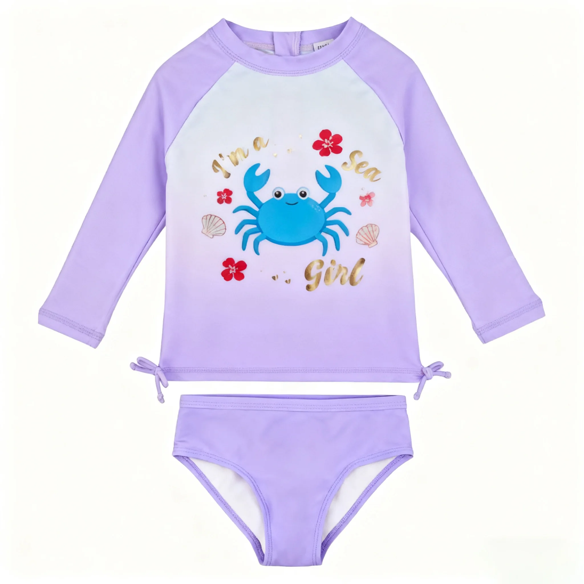 Custom Girls Swimsuit Long Sleeve Swim Top UV Protected Eco-Friendly Breathable Soft Spandex/Polyester for Kids Beach Resort