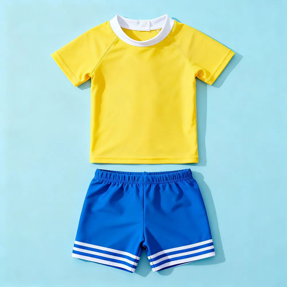 Oeko Tex Custom Boys Kids Summer Swimwear Two-Piece Animal Print Swimsuit Sets Short Sleeves Soft Breathable for Baby