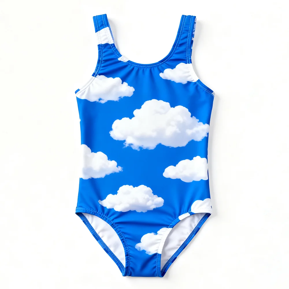 OEKO TEX Certified Toddler Swimwear Cloud Printed One-piece Swimsuit Children's Cute Bathing Suit Eco Friendly Swim Wear