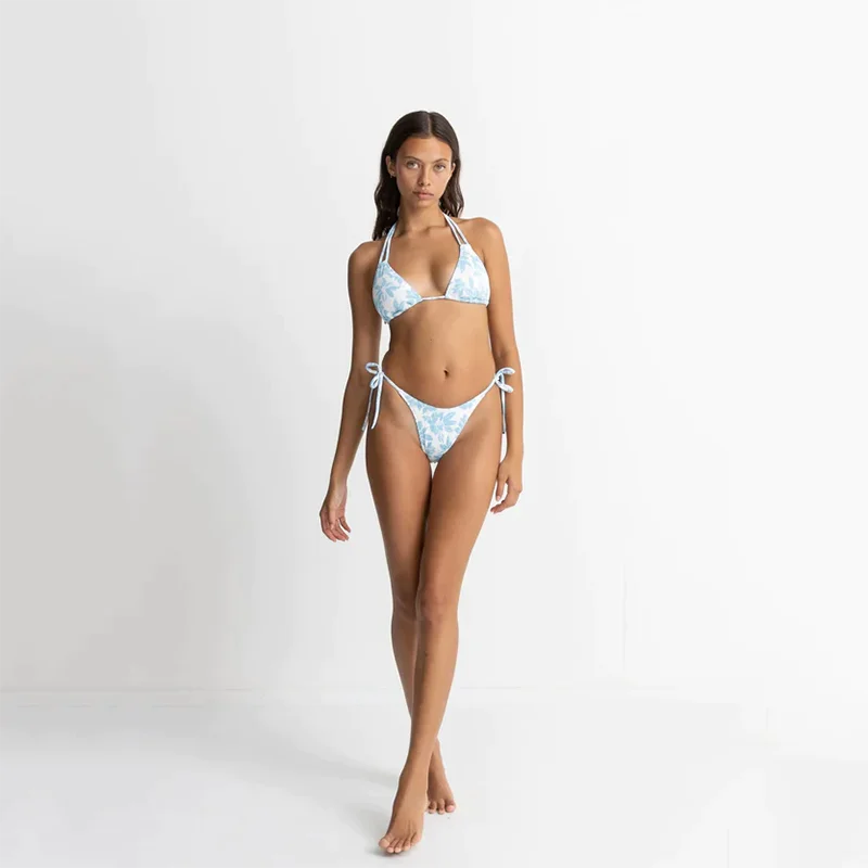 Summer Custom Floral Print Double Strap Bikini Two Piece Comfortable High Quality String Bikini Set