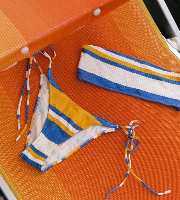 2026 Custom High Rise Two Piece Bandeau Tube Top Swimsuit Sexy String Triangle Micro Bikini Set Striped Print Eco-Friendly