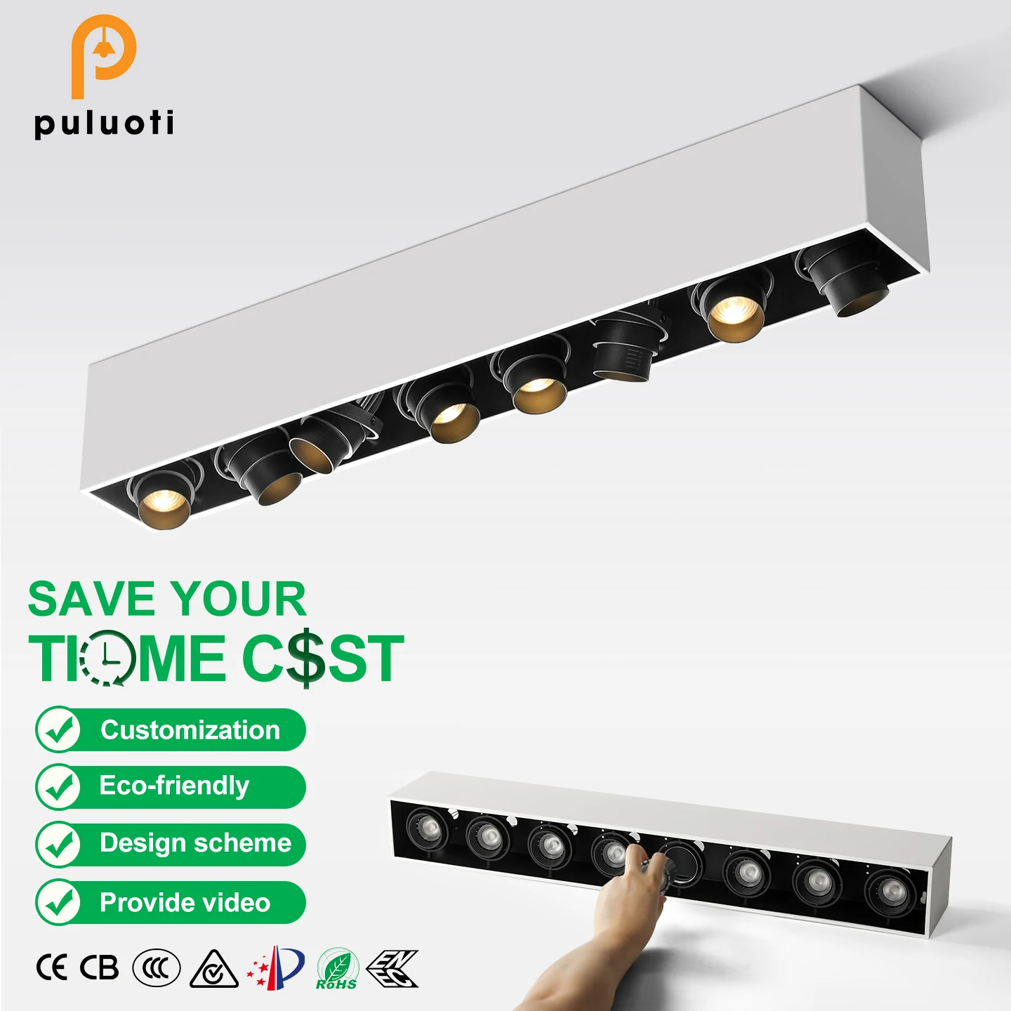 360 Degree Gyro Adjustable Cob LED Spotlight Modern Aluminum Square Surface Mounted Ceiling Dimmable Surface Mounted Down Light