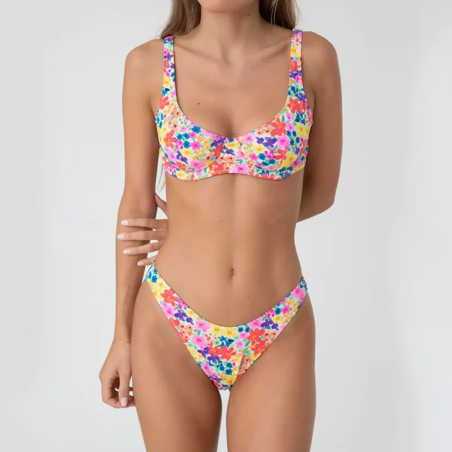High Quality Women's Floral Print Underwire Bikini Comfortable High Waist Beach Bikini Set with Custom Logo on Front