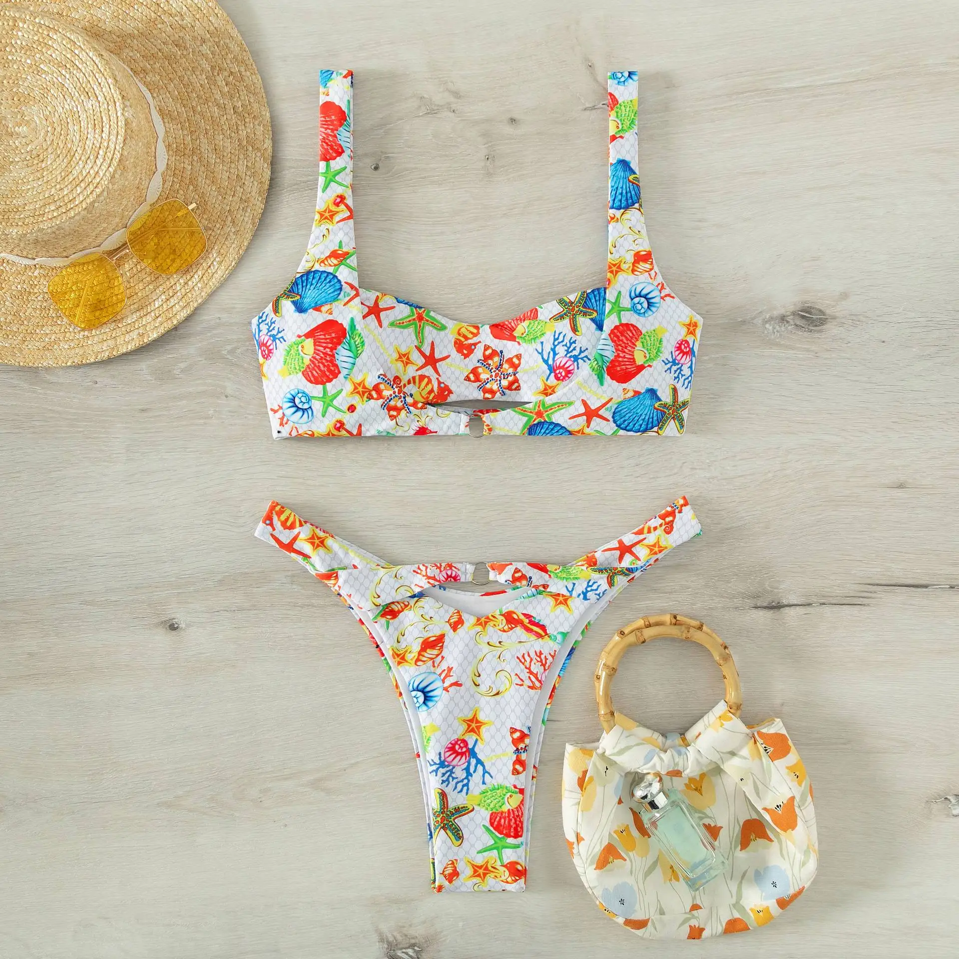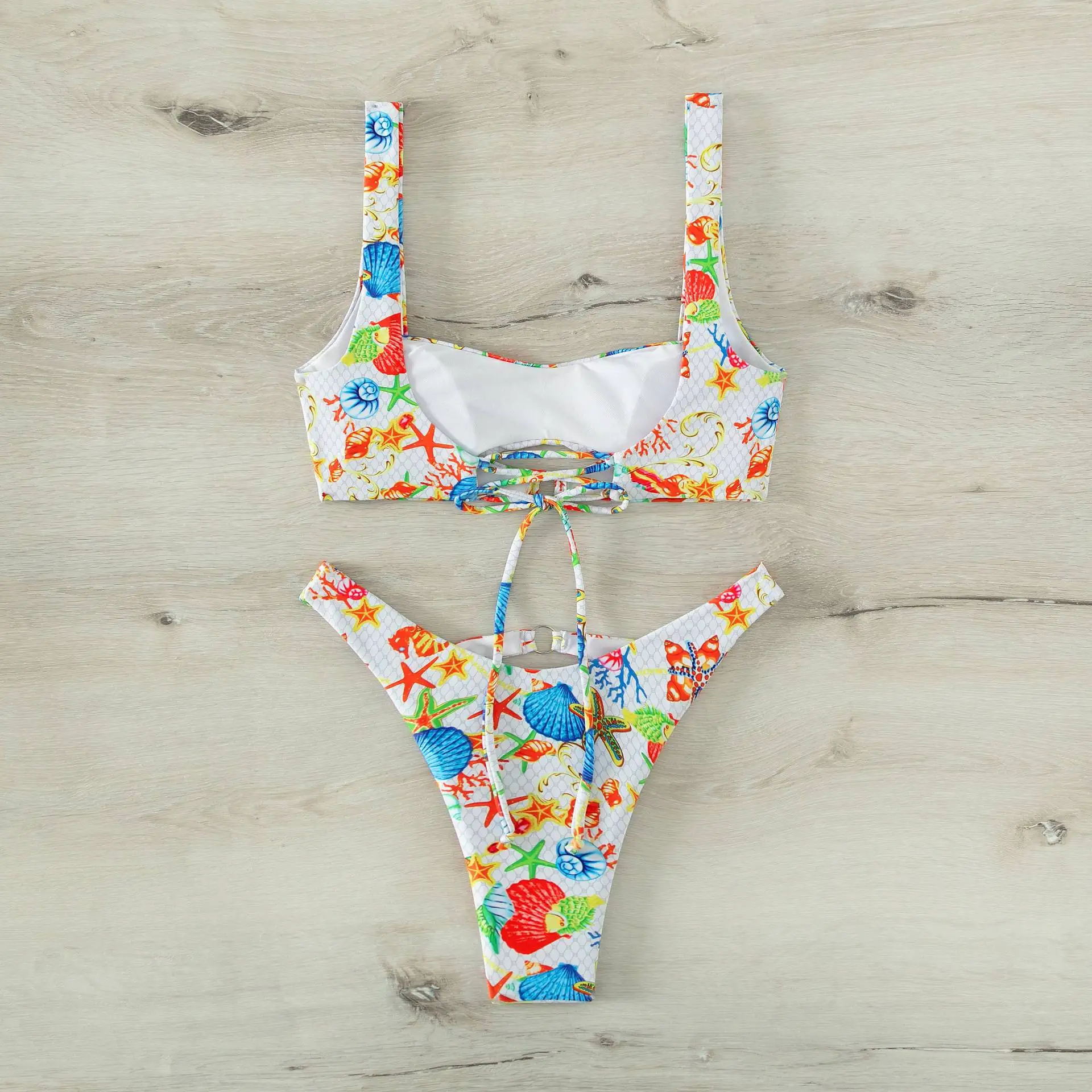 MLY Ruffle Bikini Summer Two Piece Suit Sexy Swimwear Bandage Biquini Triangle Swimsuit Printed Bathsuit