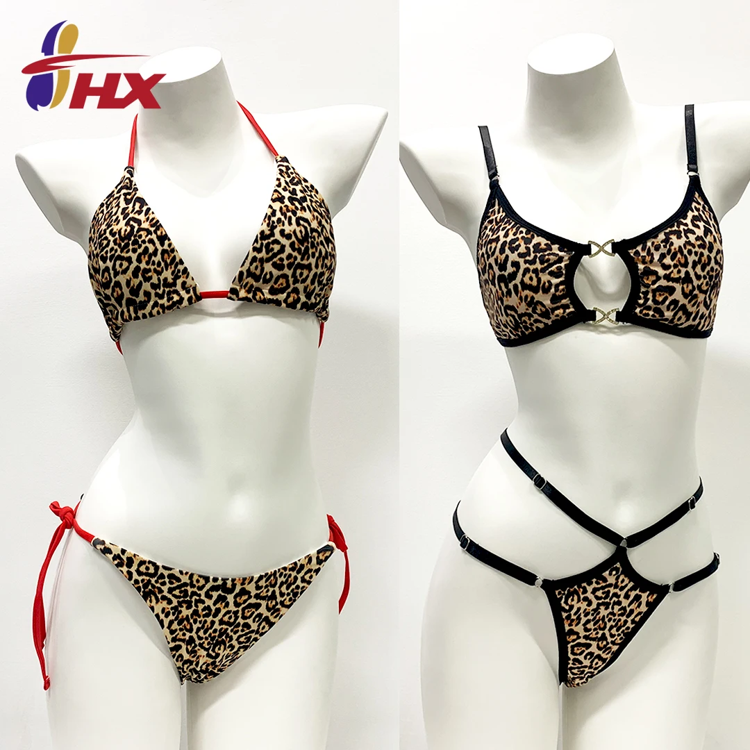 Customized Eco-Friendly Quick Dry Plus Size Fashion Leopard Print High Quality Sexy String Thong Bikini Two Piece Micro Bra