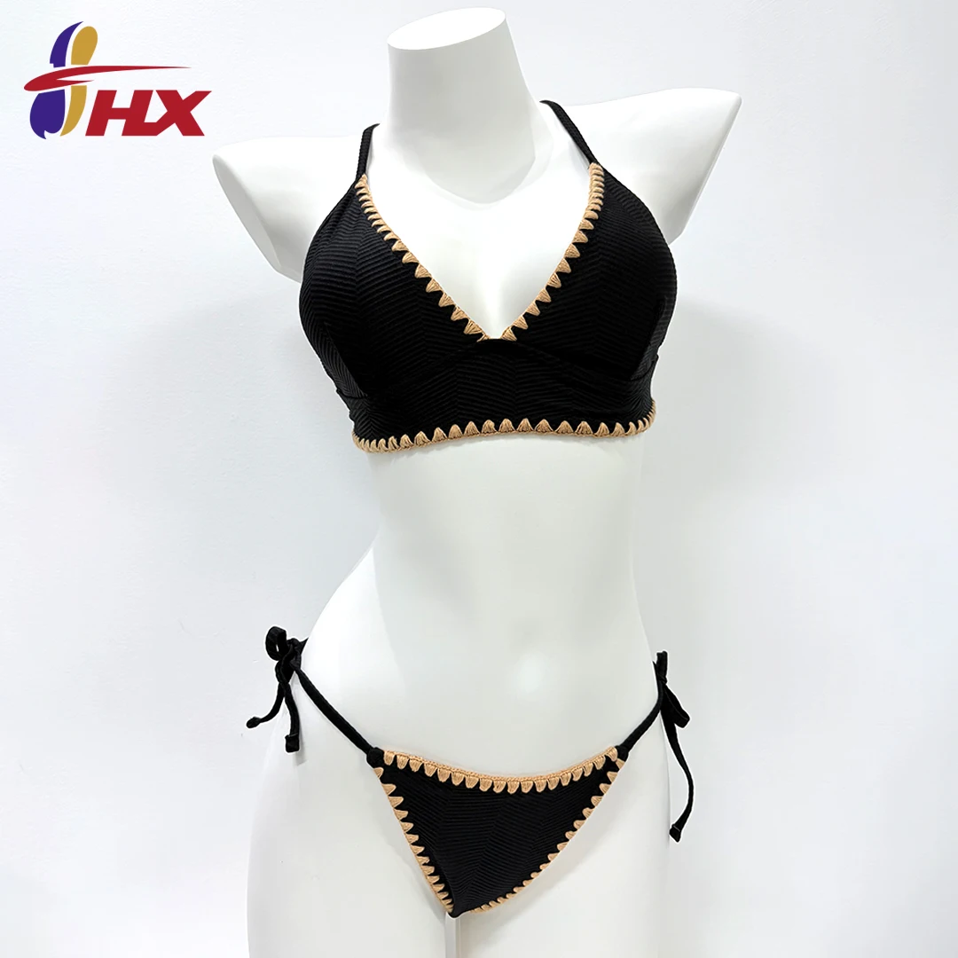 MLY Best Selling Solid Black and White Women Ladies Beachwear Custom Swimwear Sexy Micro Bikini Bathing Suits