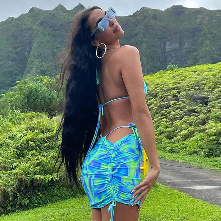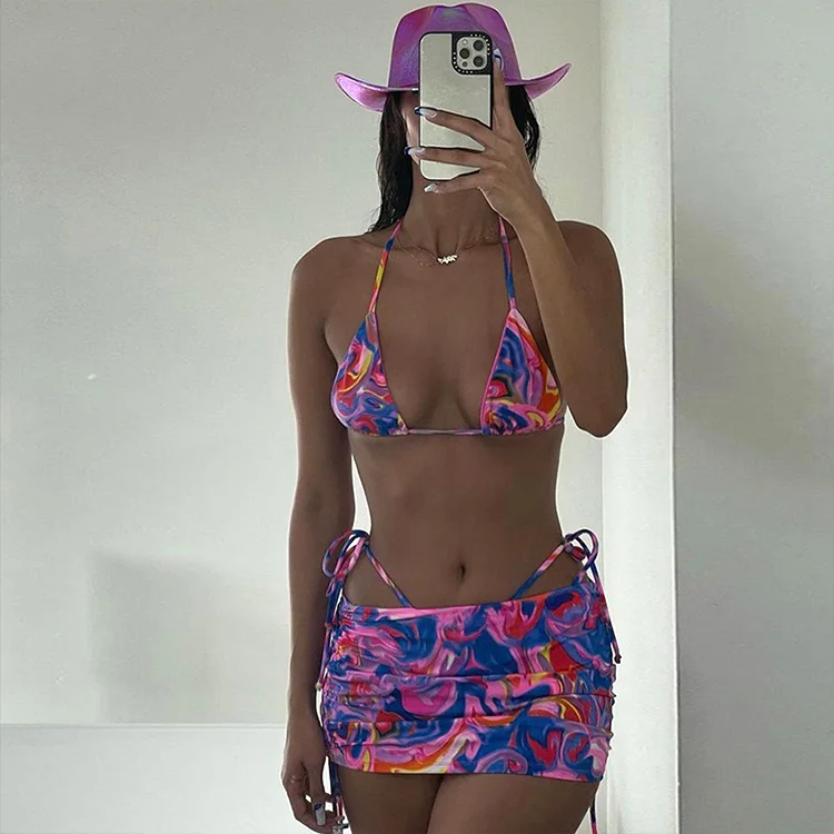 Custom New Bikini Beachwear Colorful Three Piece Cover up Sexy Swimsuit Bathing Suit Women Swimwear