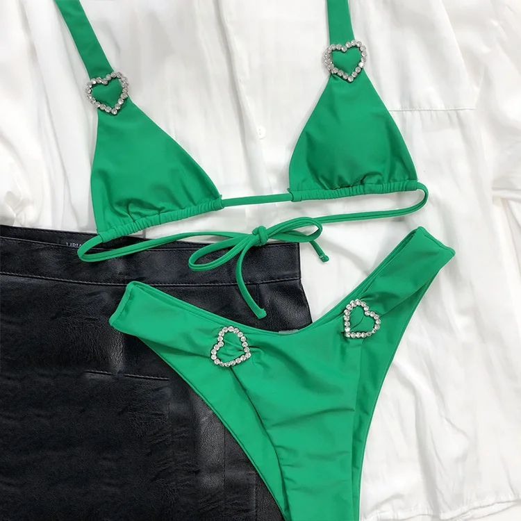 Custom Halter&Lace up Diamond Swimwear Sexy Women's Swimsuits Beachwear Luxury Bikini Swimwear for Girls
