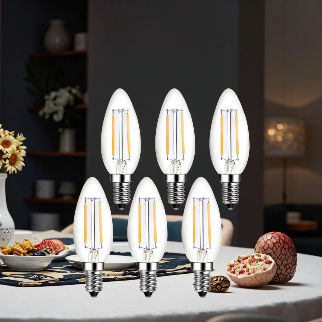 Vertak 6W 4000K Vintage LED Filament Bulb C35 E14 Industrial Decorate Glass ROHS EMC SAA Certified Retro Style LED Filament