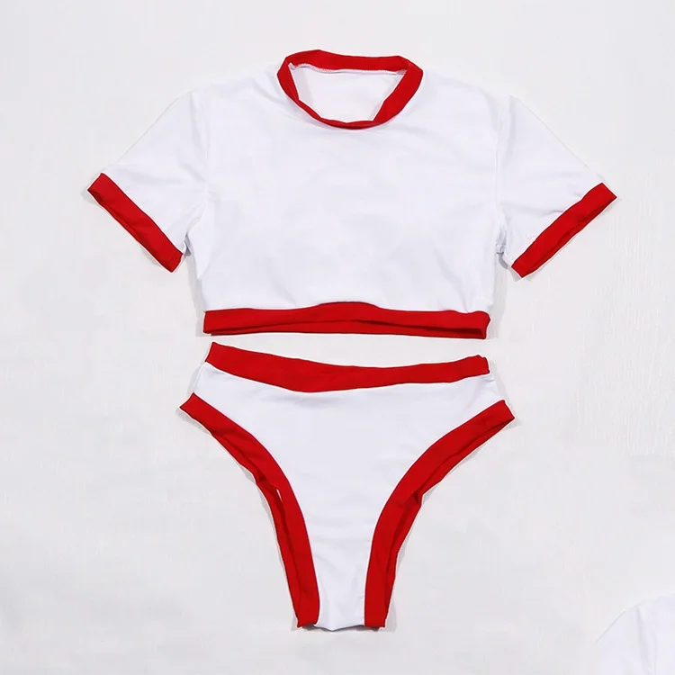 Custom Logo Half Sleeve Two Piece Bikini Sport Swimsuit High Quality Women Bikini Swimwear Sexy Bathing Suit