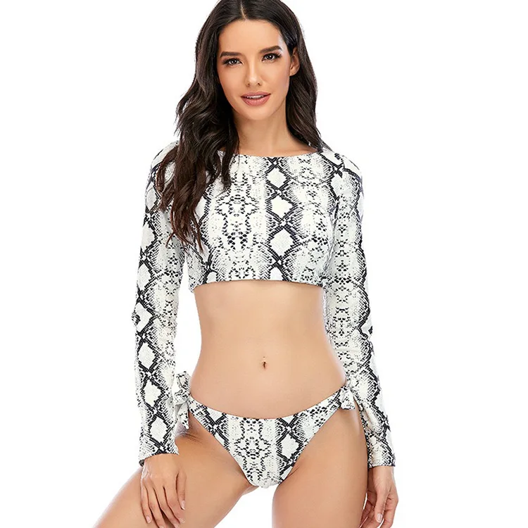 2022 Women's Long Sleeve Leopard Bikini Set Summer Swimwear Beachwear with High Decency Bathing Suit & Swimsuit