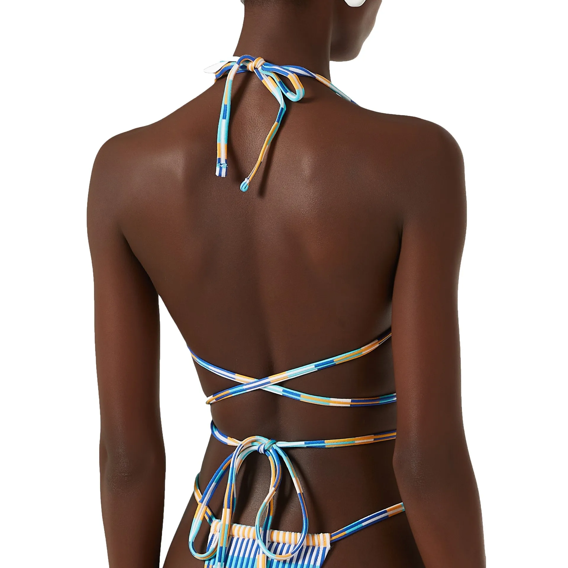 MLY Factory Wholesale Bikini Custom Sexy Bodysuit Jumpsuit Beachwear Backless Striped Print One Piece Swimwear