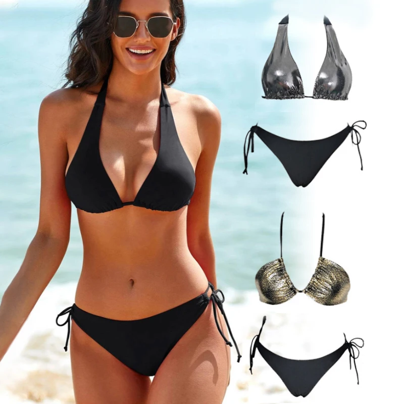 2026 New Design Women's 2-Piece Swimsuit Sexy Tie Backless Halter Front Wireless Bra Tie Side Bottom Sportswear Bathing Suits