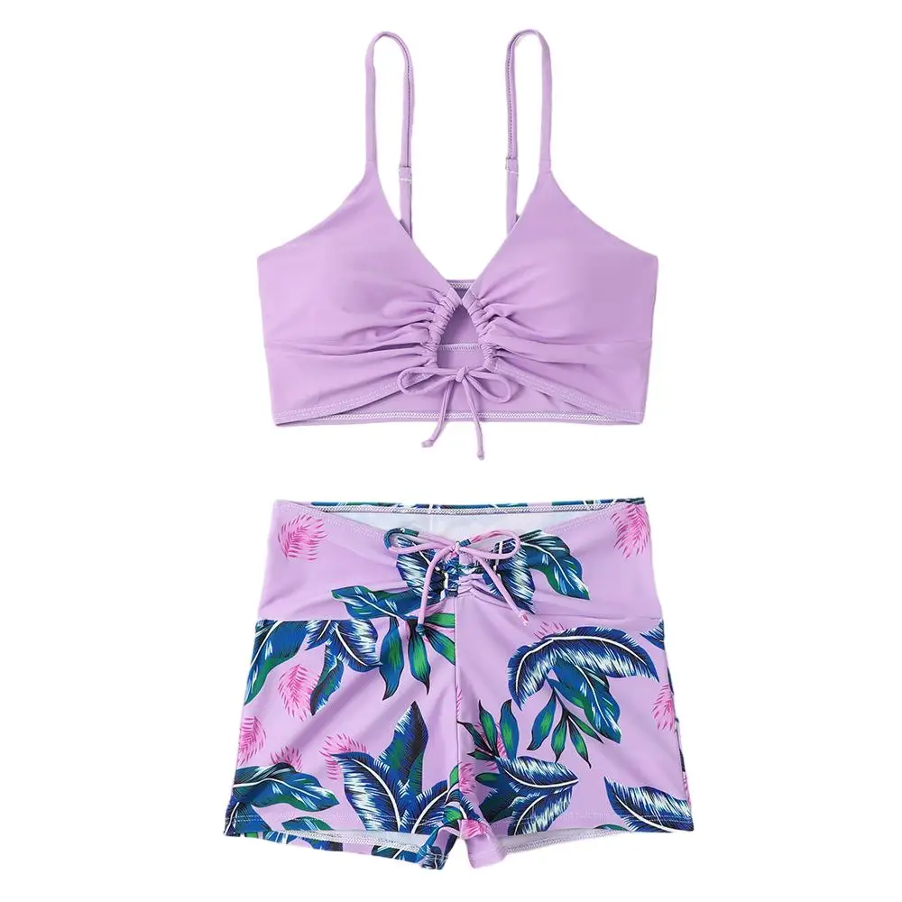 MLY Ruffle Bikini Summer Two Piece Suit Sexy Swimwear Bandage Biquini Triangle Swimsuit Printed Bathsuit