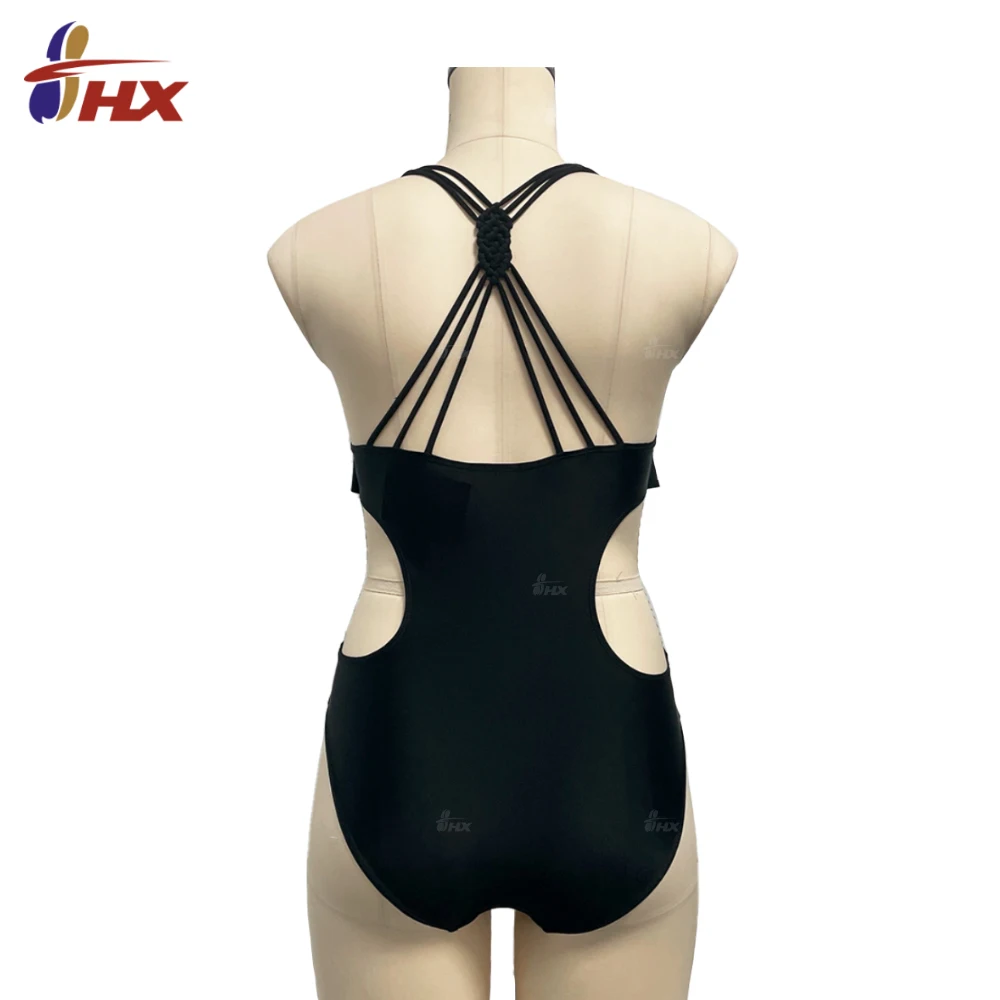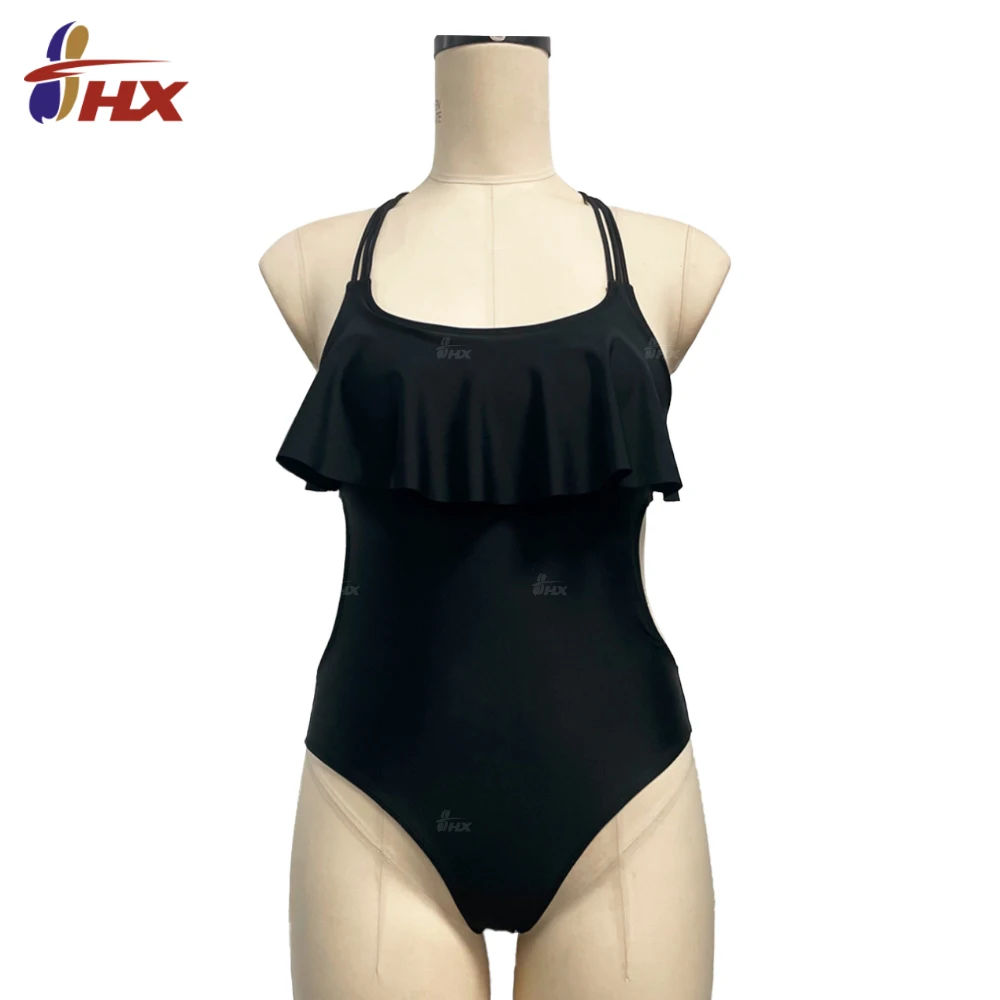 High Quality Custom One-Piece Bathing Suit with Sexy Ruffle-Strap Wholesale Crossed Straps Beach Cover-Up Sexy Beach Wear