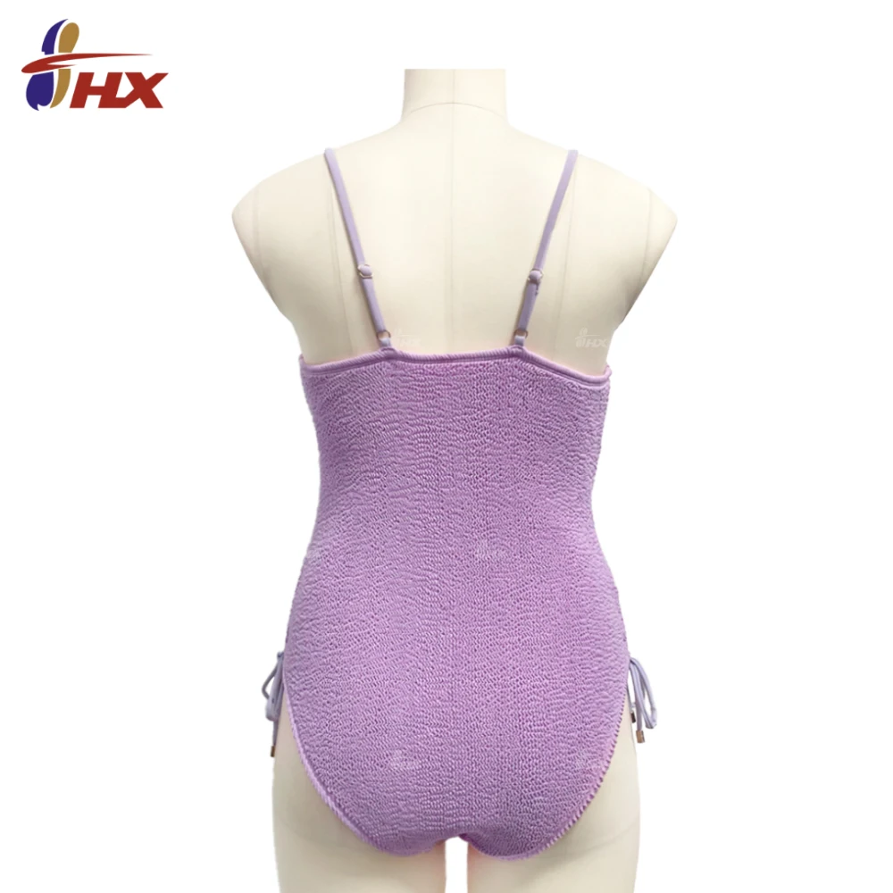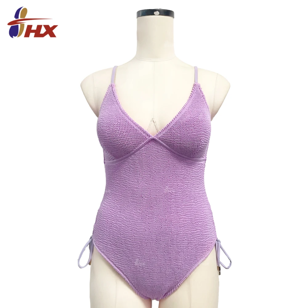 2026 Hot Sale Plus Size Grande Taille One Piece Swimsuit Crinkle Ribbed XXX Bikini Swimwear for Women Solid Pattern