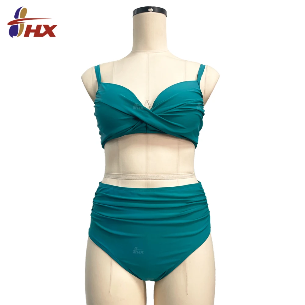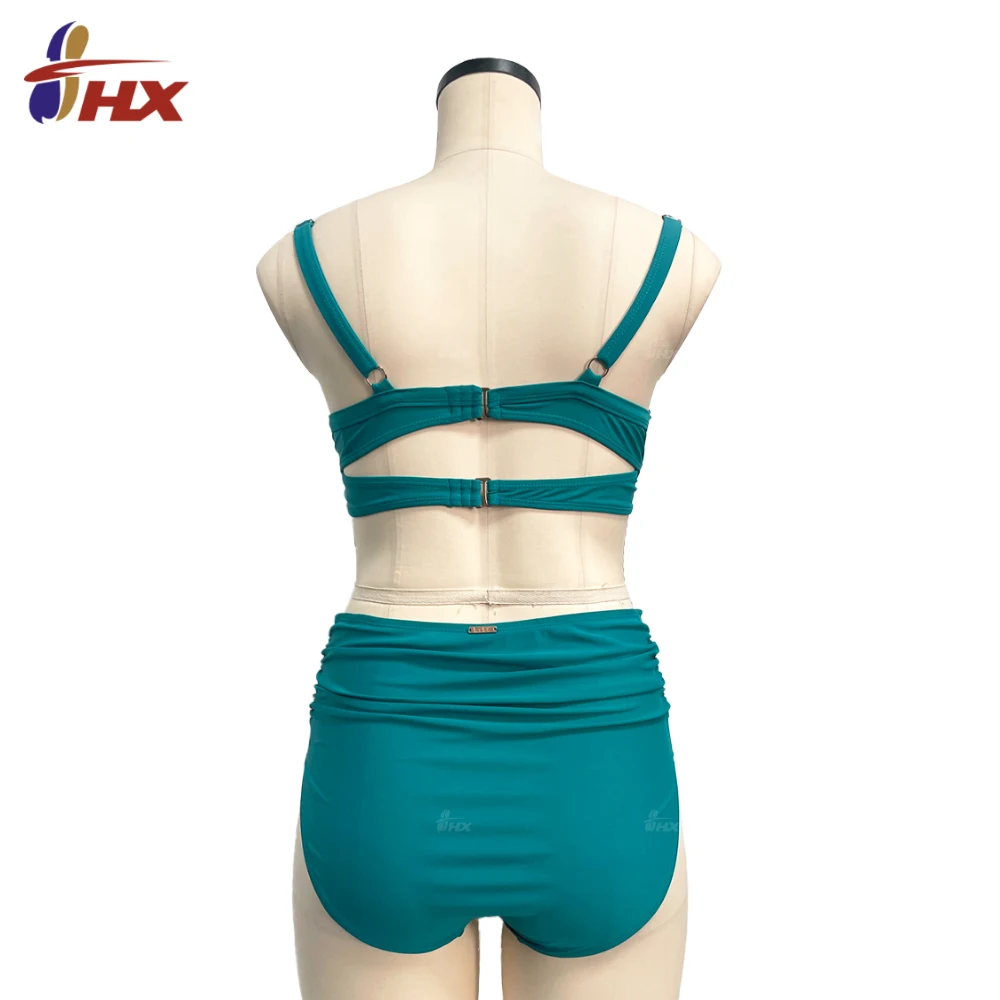 Luxury High Waist Push up Two-Piece Bikini Set with Front Logo Custom Design Beachwear for Women