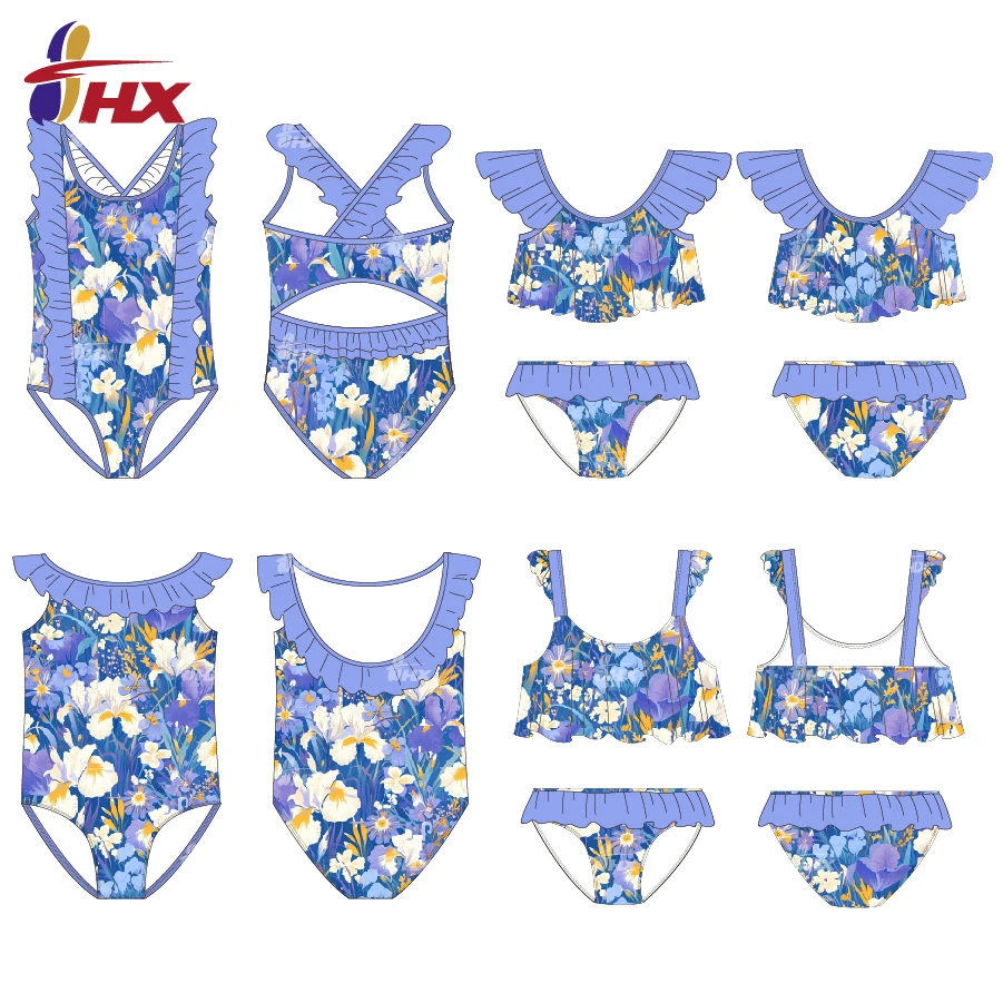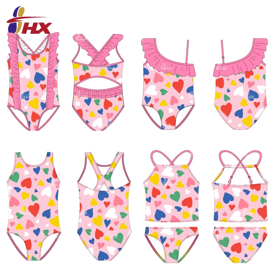 Custom Designer UPF50+ Women's Recyclable Fabric Swimwear 2026 Kids Bathing Suits Bandeau Bra Swim Brief Beach Bikini Print