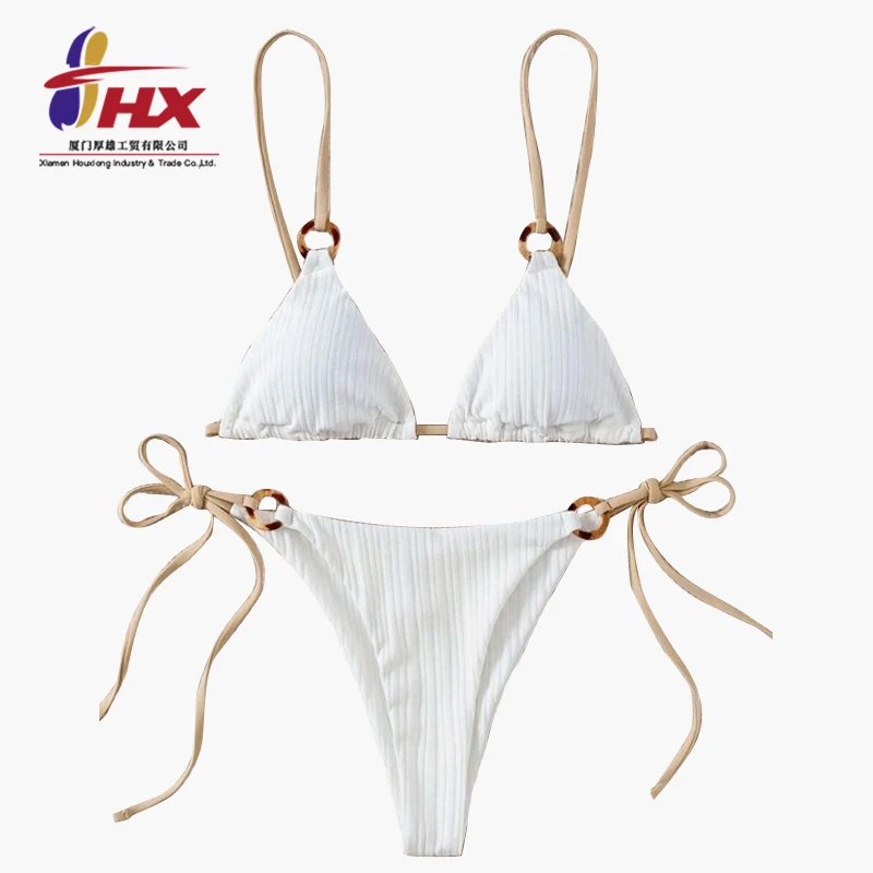 2023 HX Custom Logo Woman Costume Swimming Solid Color Beachwear Two-piece Sexy Bikinis Swimwear for Women