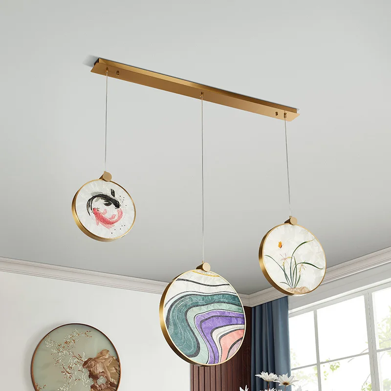 Enamel Colored New Chinese Style Copper Restaurant Pendant Lamp Retro Dining Restaurant Lights Zen Tea Room Pendant Light