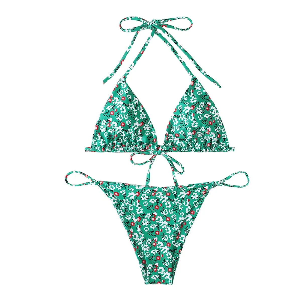 New Fashion Women Two Piece Mini Micro Bikini Set Beachwear Floral Swimwear Custom LOGO Swim Suits 2026
