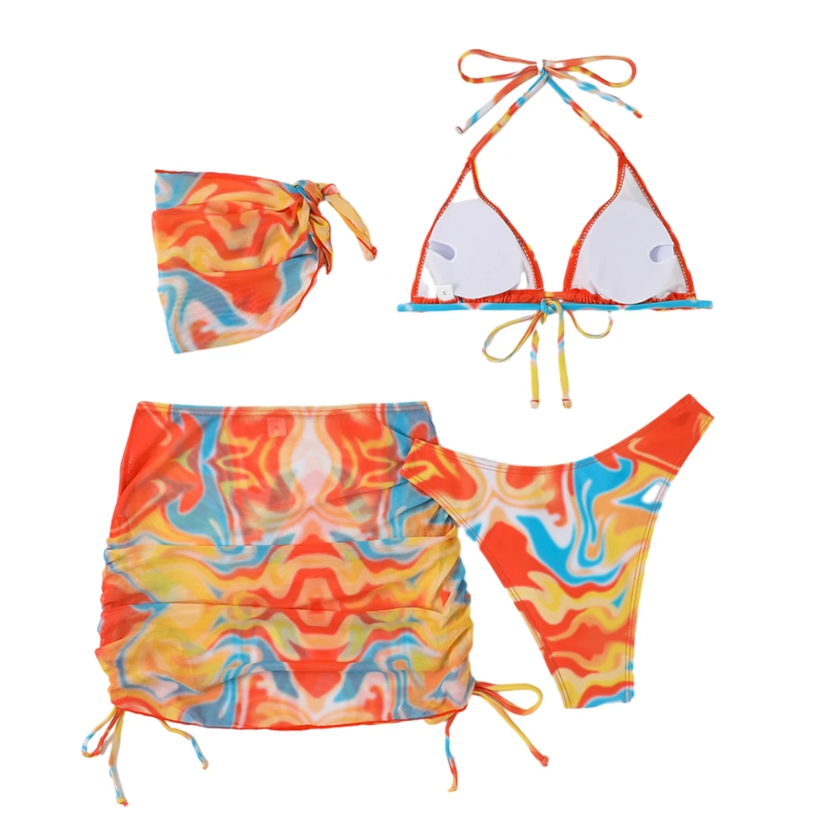 4Pcs Tie-Dyed Print Sexy Fashion Design Bikini Dress Women Swimwear Beachwear 2023 Swimsuit Bathing Suit Set