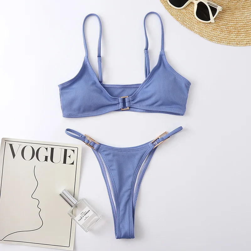 2026 New Arrival Split Women's Swimsuit Small Pit Strip Fabric Solid Color Bathing Suit Summer Sexy Women Bikini