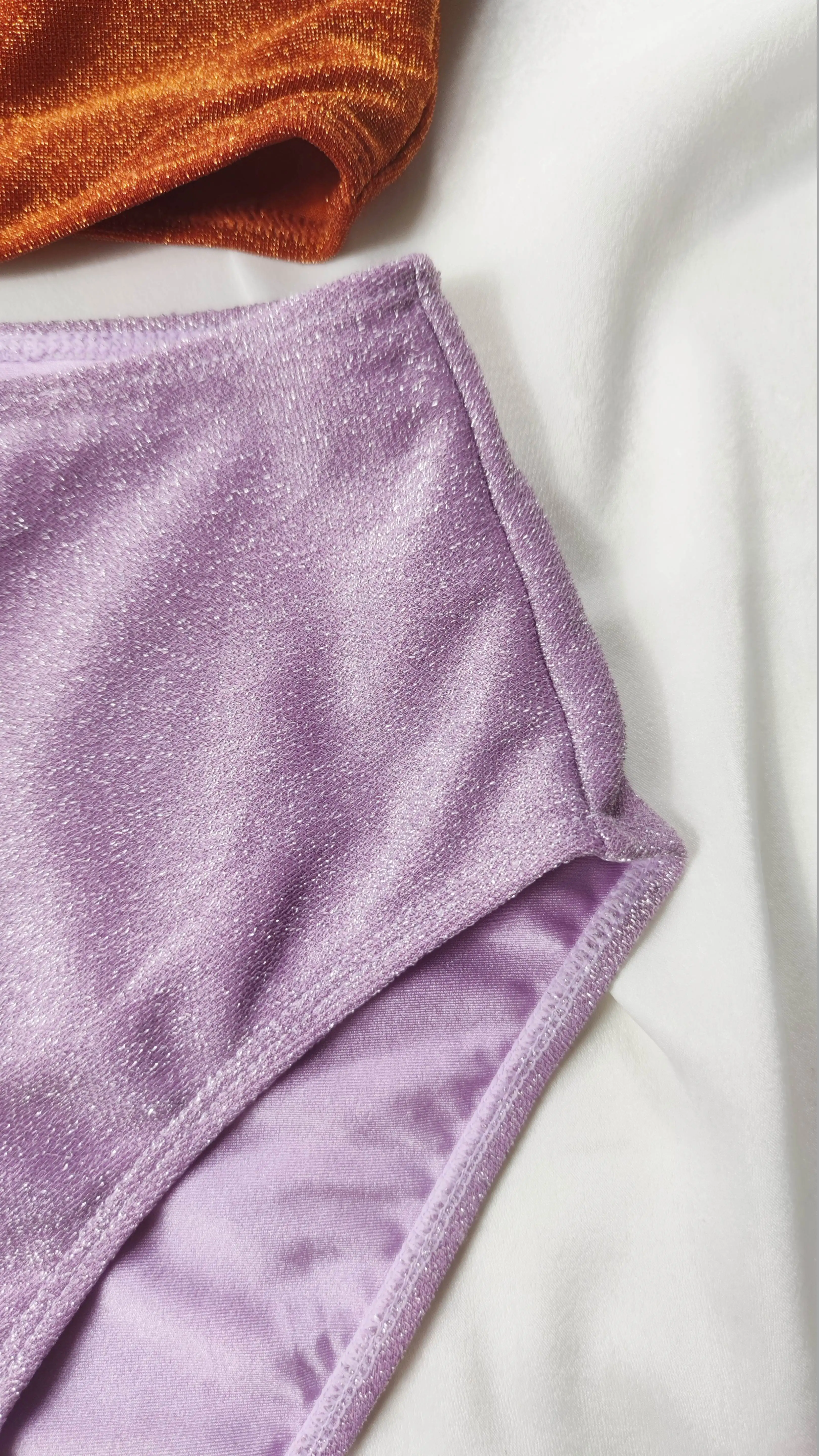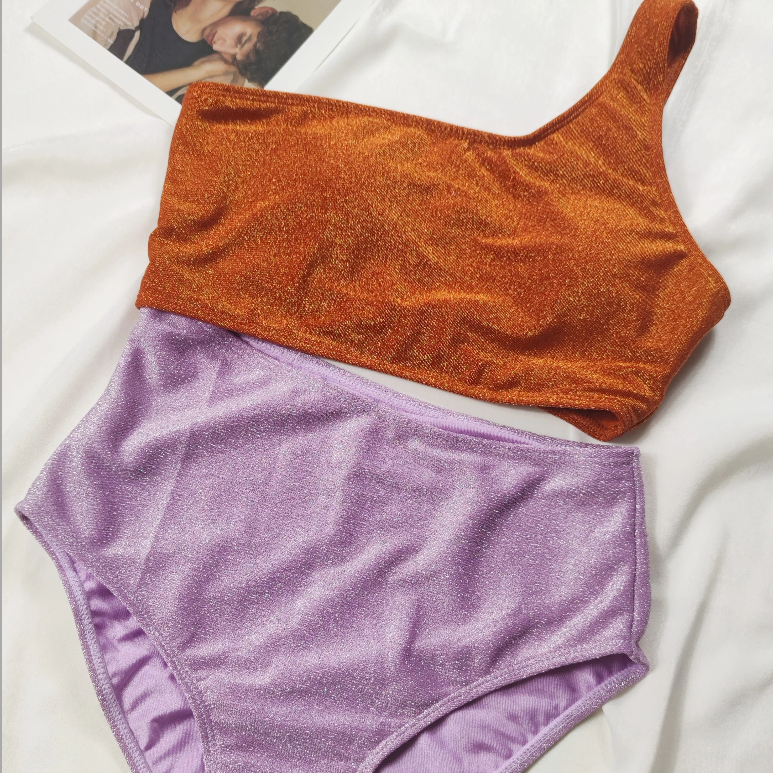 New Style Fashion Show Custom Glitter Fabric Micro Bikini Swimsuit Beach 2 Piece Colorblock Bikini Set Women