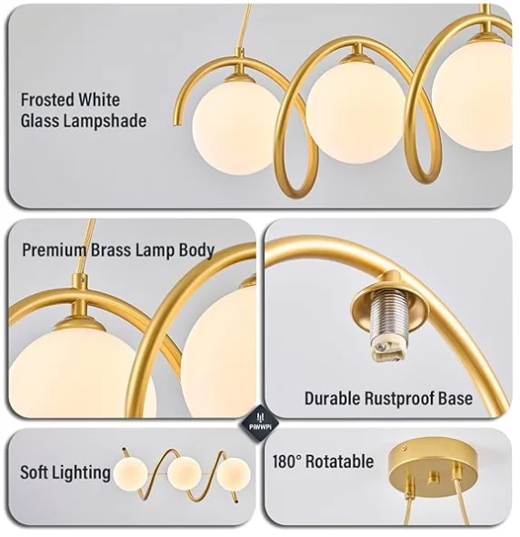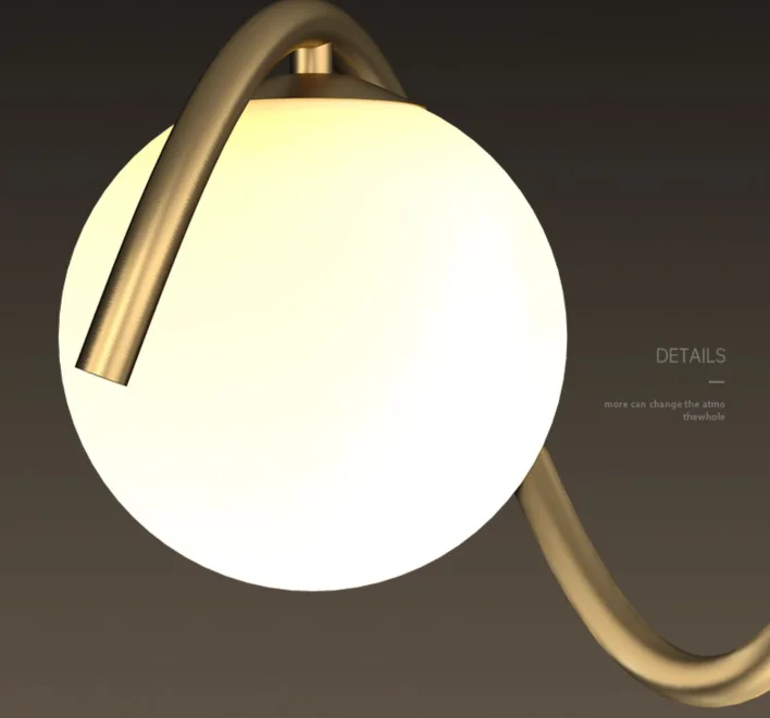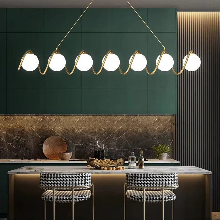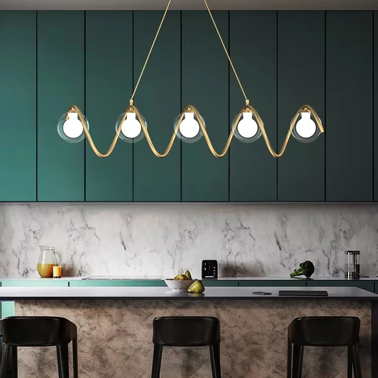 JACKSUN LED Glass Globe Balls Chandelier 5 Lights Mid Century Brass Pendant Lamp Spiral Wave Light 80cm Over Table