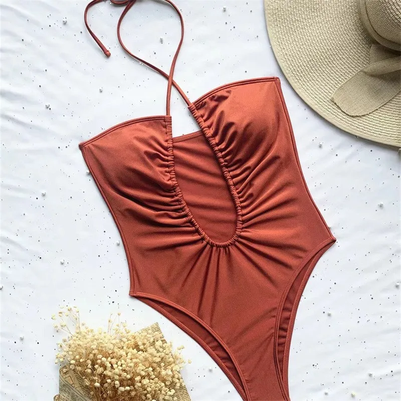 Women's Sexy One-Piece Swimwear Custom Logo Summer Halter Bathing Suit Leopard Print Bodysuit Bra Wholesale Customizable Sexy
