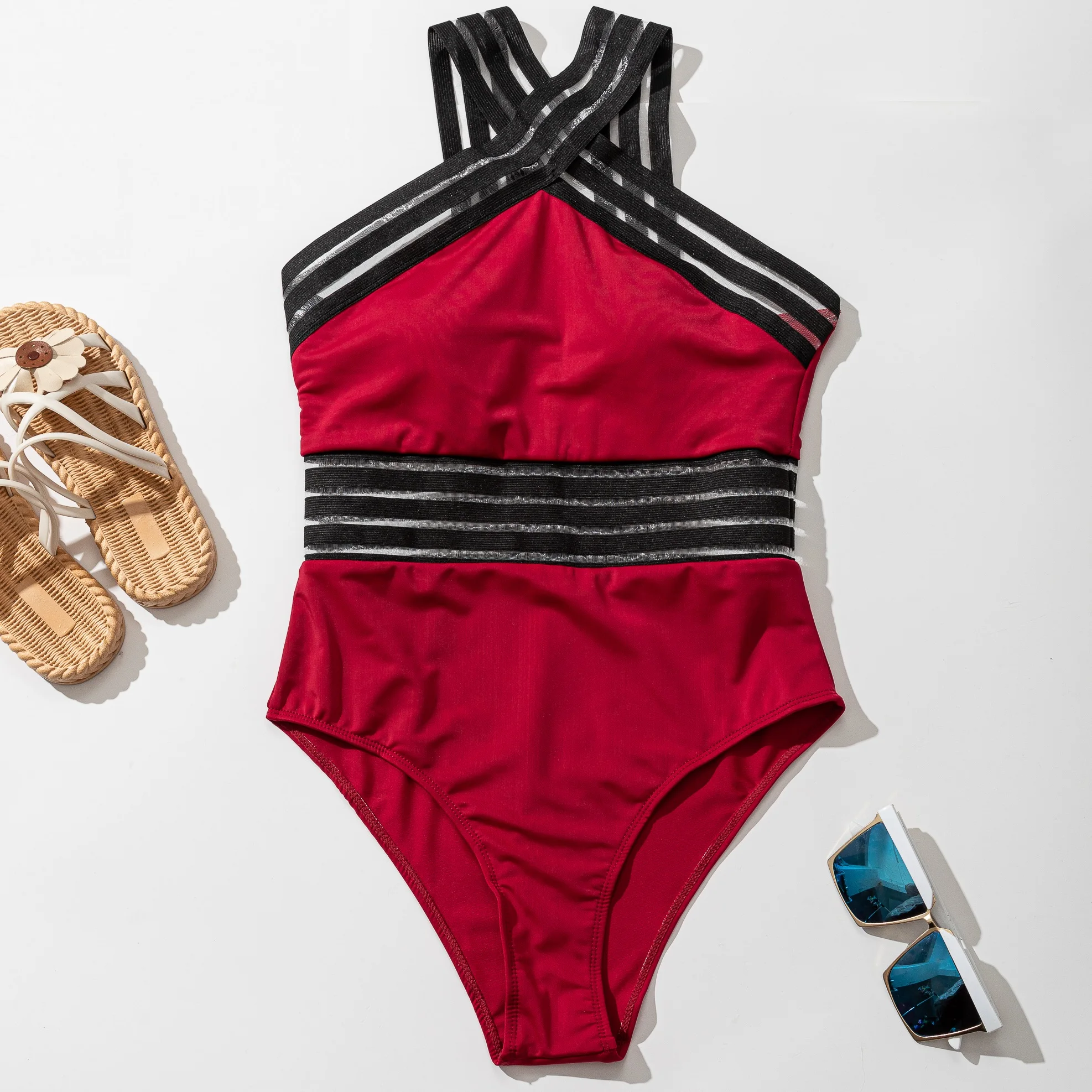 Custom Fashion Women's Micro Bikini Sexy Cross-Neck One-Piece Swimsuit in Black for Beach Bathing