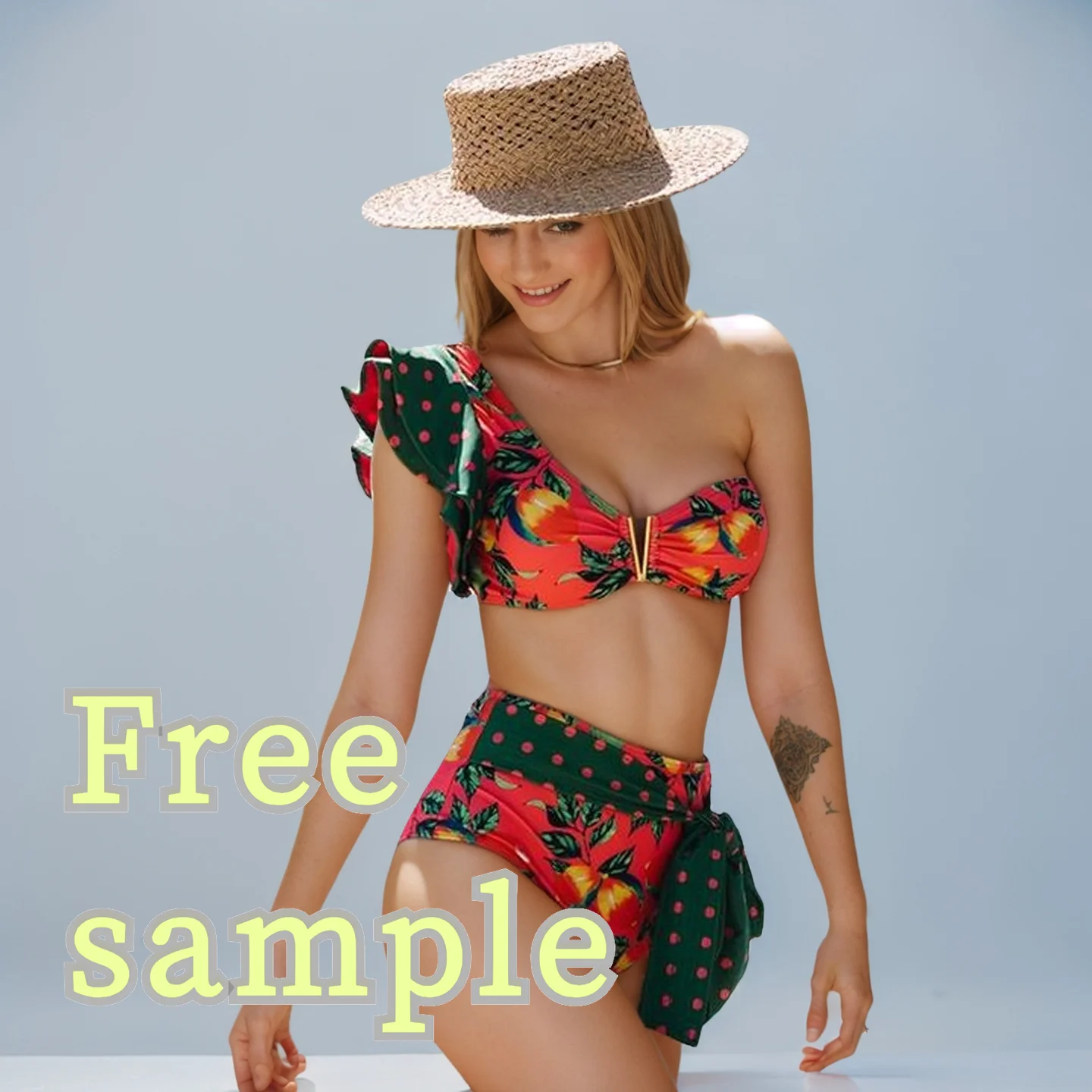 MLY Ruffle Bikini Summer Two Piece Suit Sexy Swimwear Bandage Biquini Triangle Swimsuit Printed Bathsuit