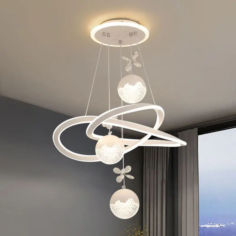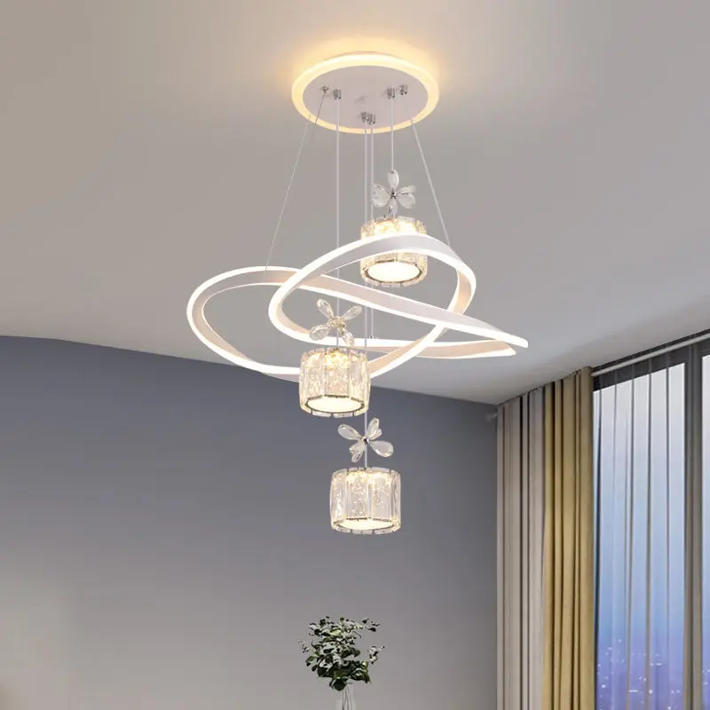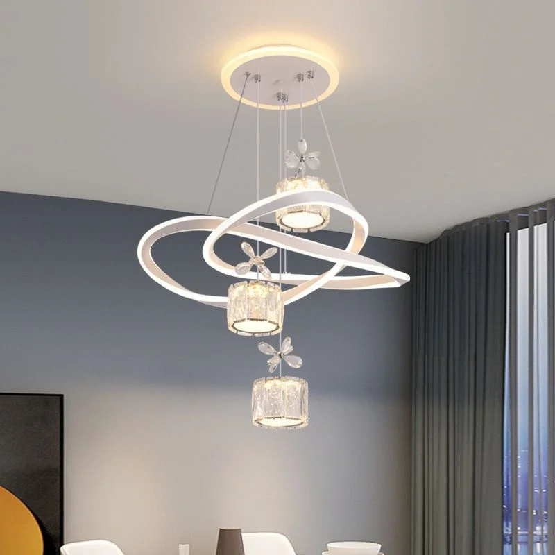 JACKSUN Led Crystal Decor Chandelier with Remote Control Adjustable Height Silver Ceiling Pendant Lights 120W 220V for Dining