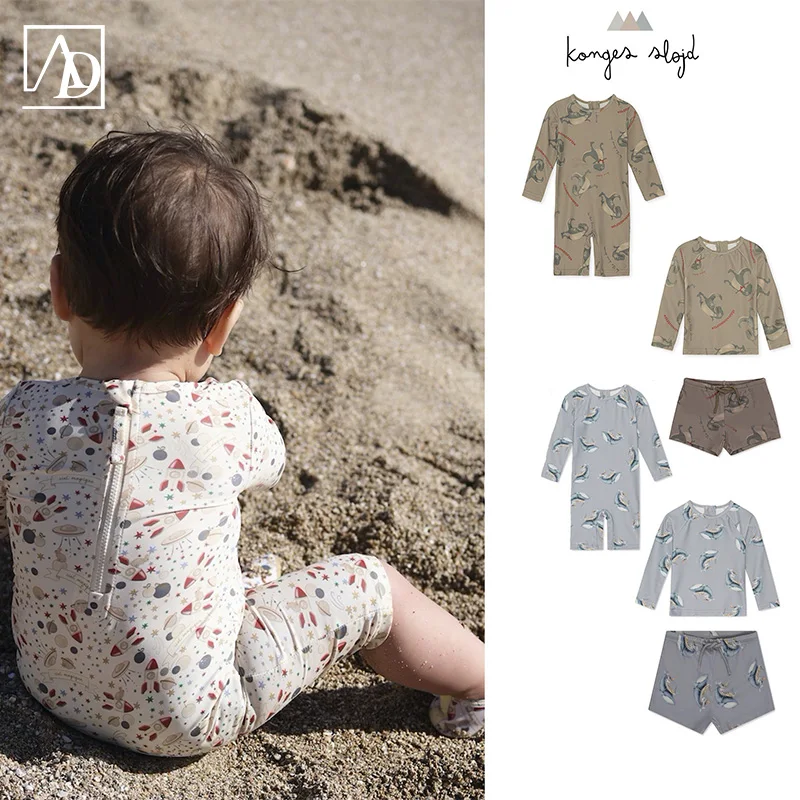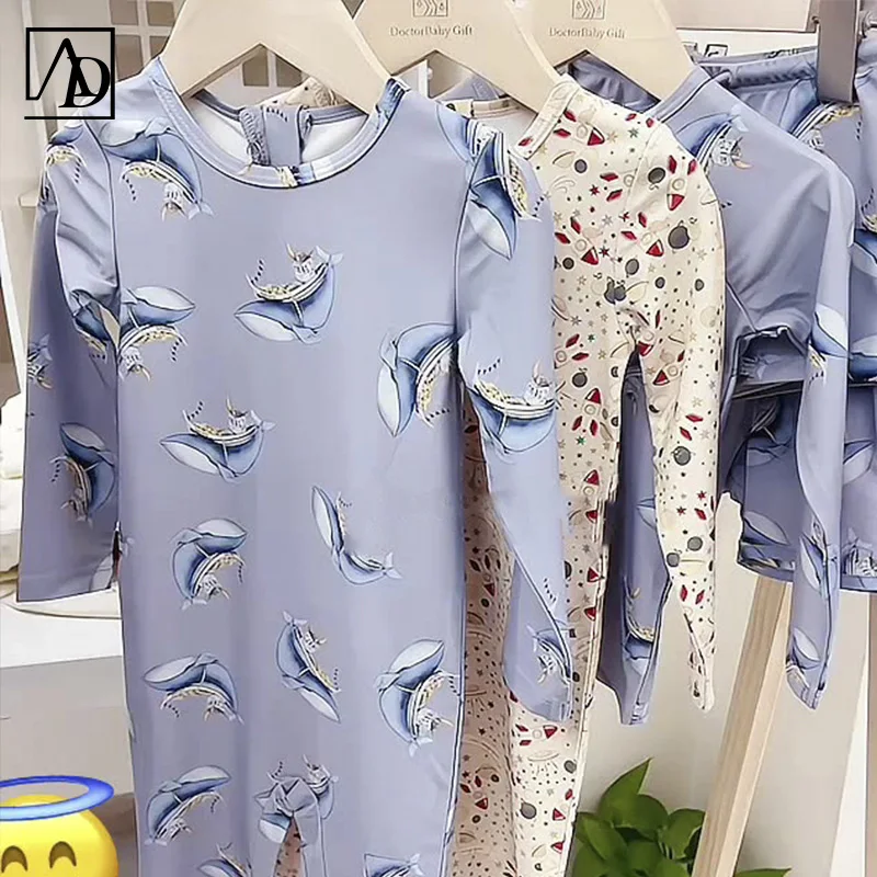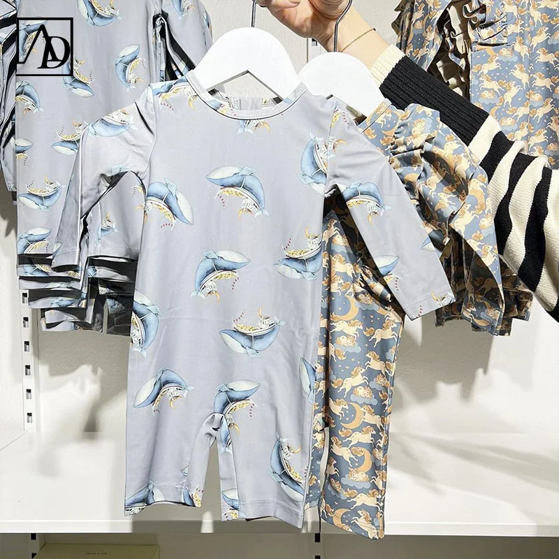 Newborn Boys and Girls Baby Swimwear Summer Cartoon Printed Short Sleeve Onesie Home Clothes