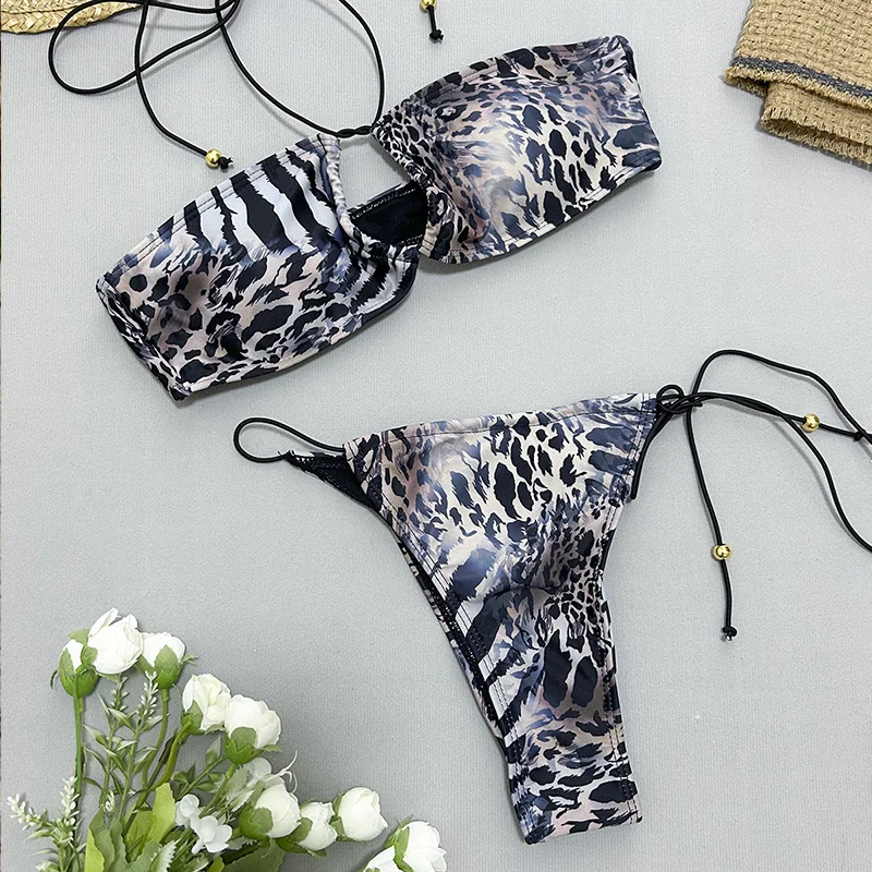 Strapless Printed Split Women's Sexy Bikini Swimsuit Beachwear