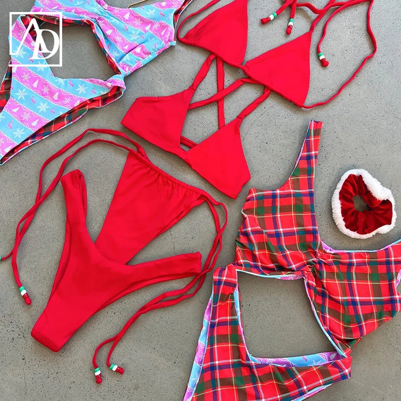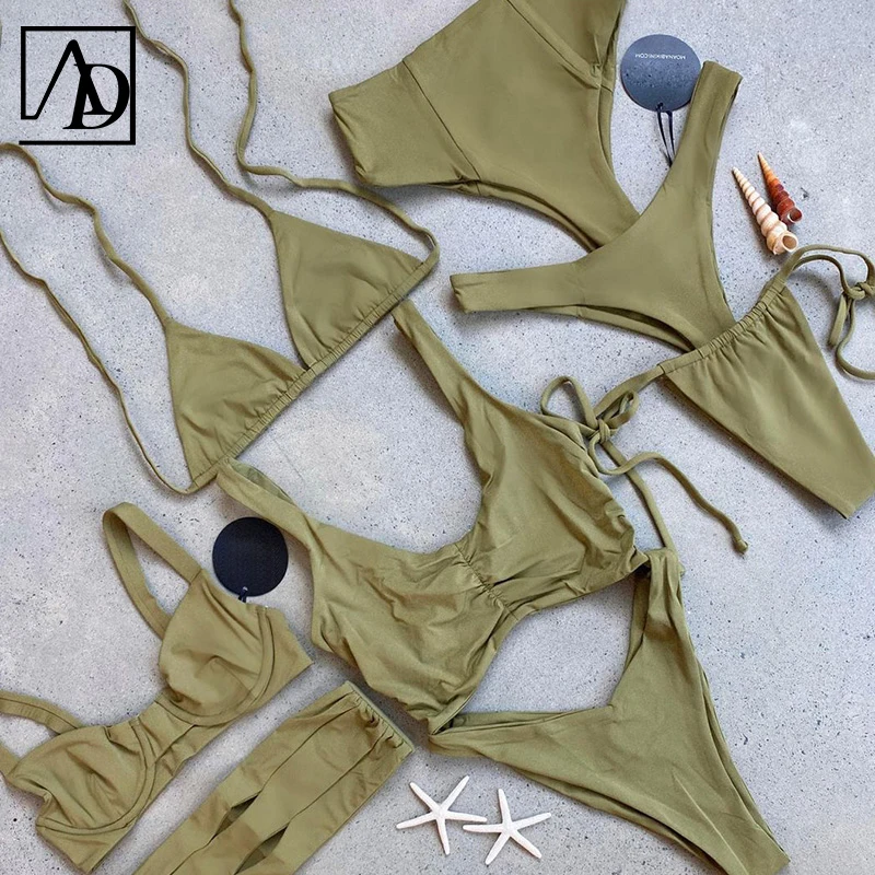 MLY Ruffle Bikini Summer Two Piece Suit Sexy Swimwear Bandage Biquini Triangle Swimsuit Printed Bathsuit