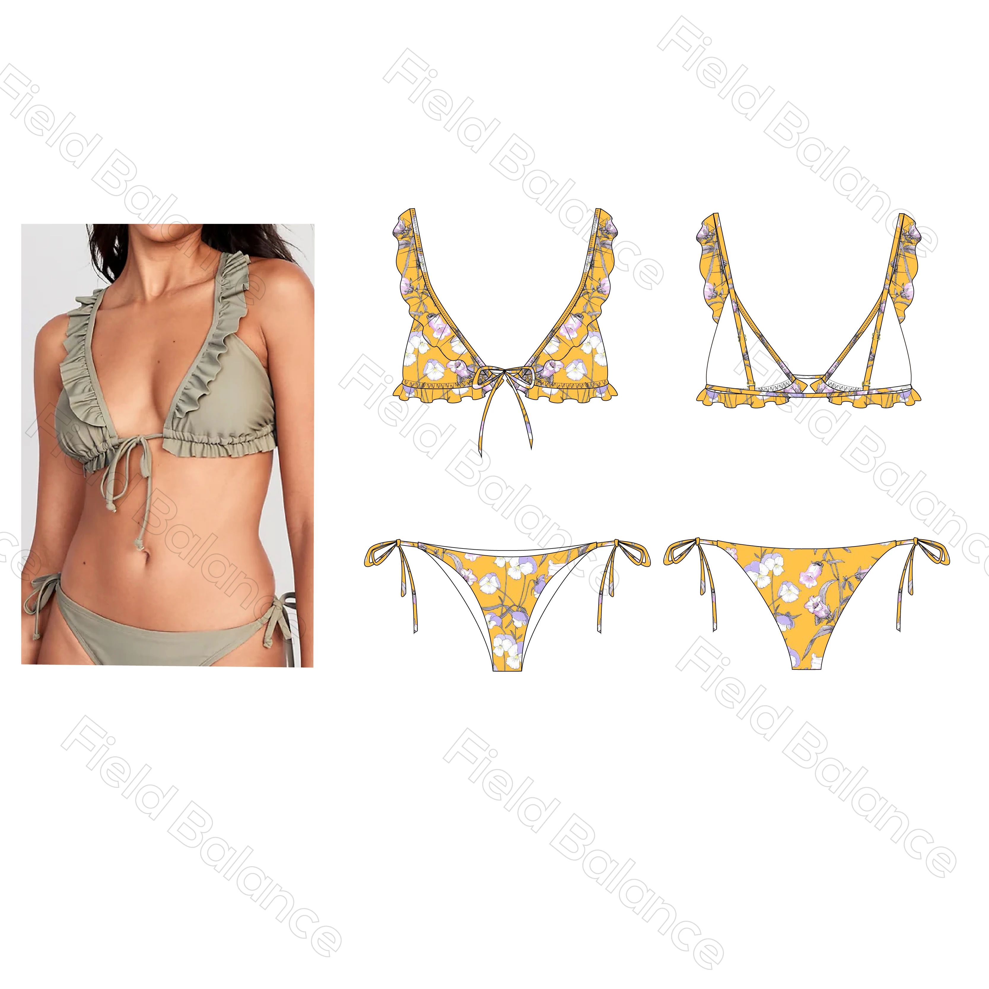 MLY Ruffle Bikini Summer Two Piece Suit Sexy Swimwear Bandage Biquini Triangle Swimsuit Printed Bathsuit