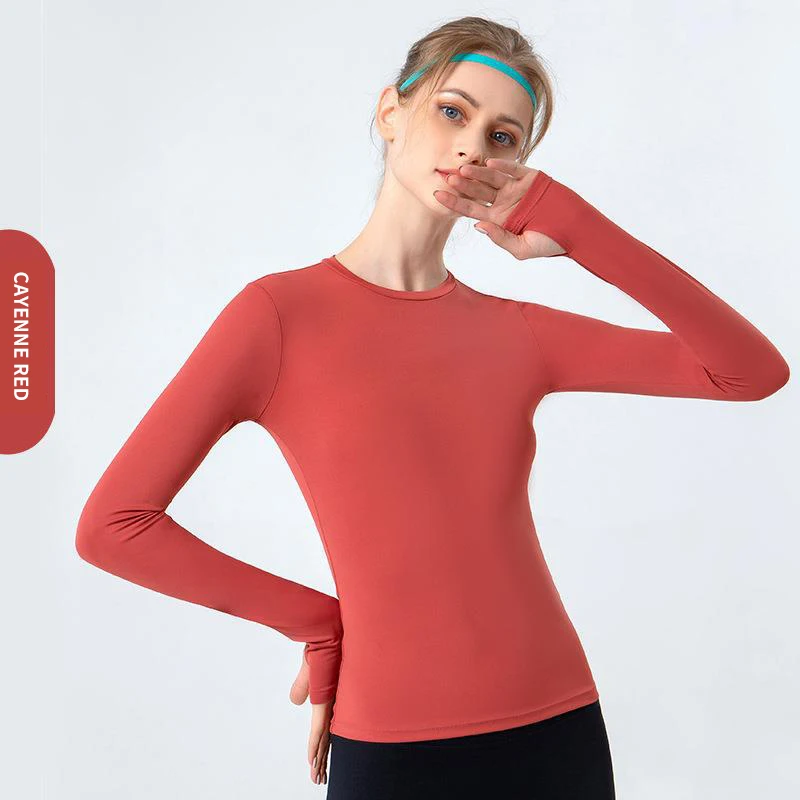 Yoga Women's Long Sleeve Running Shirts With Thumbholes Stretch Breathable Athletic Base Layer Top Workout T-shirt Bodybuilding