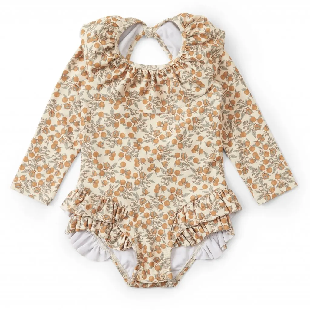 Hot Sale Girls Cute One Piece Floral Printed Anti-UV Eco-Friendly Waterproof Swimdress with Bowknot for Children