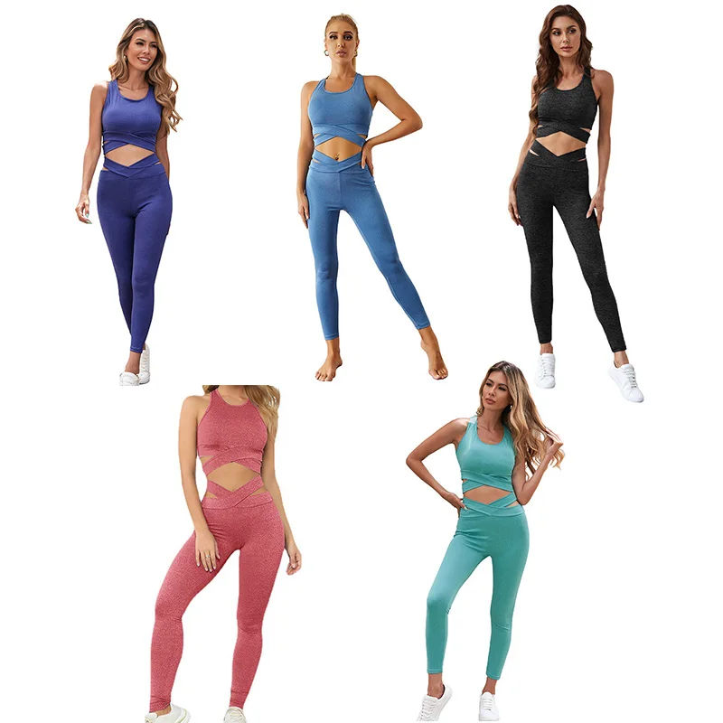 Custom Logo Women Solid Breathable Sport Clothes Gym Fitness Active Wear Low Waist Pants 1 Piece Seamless Yoga