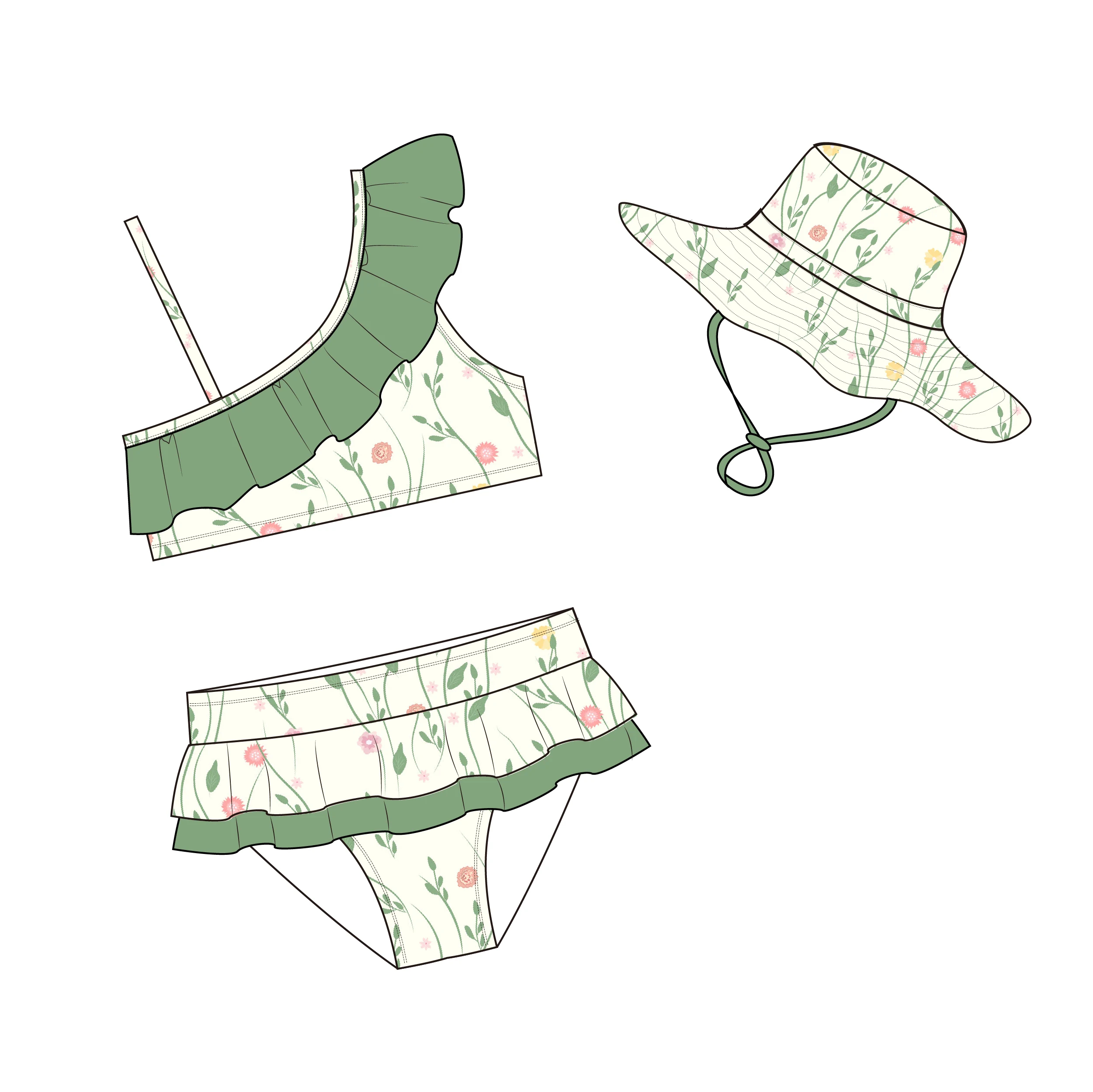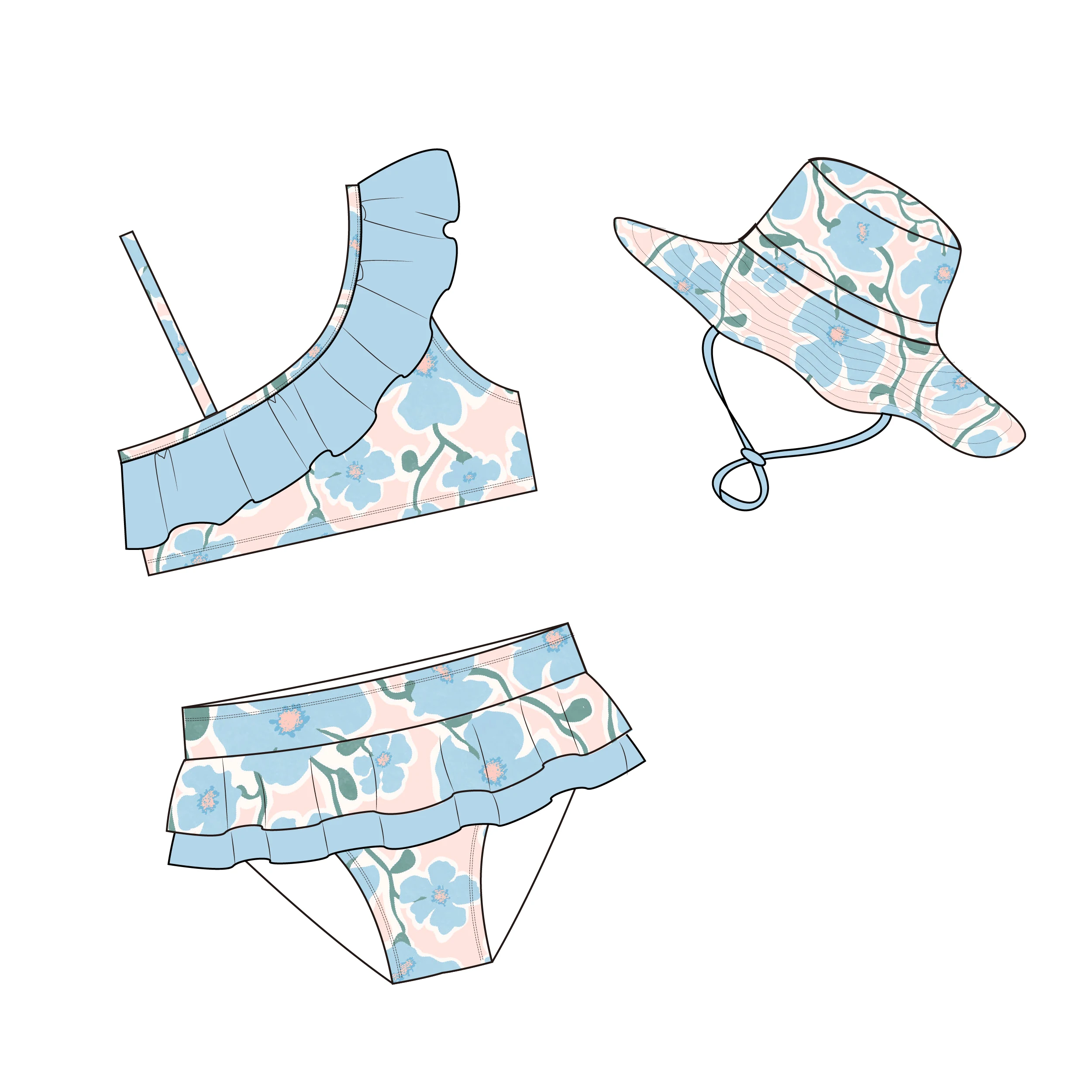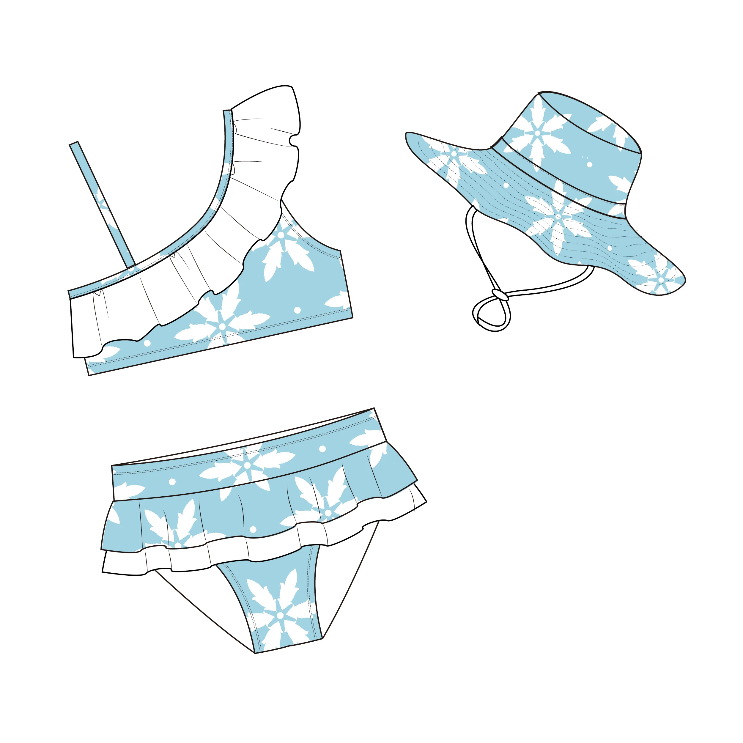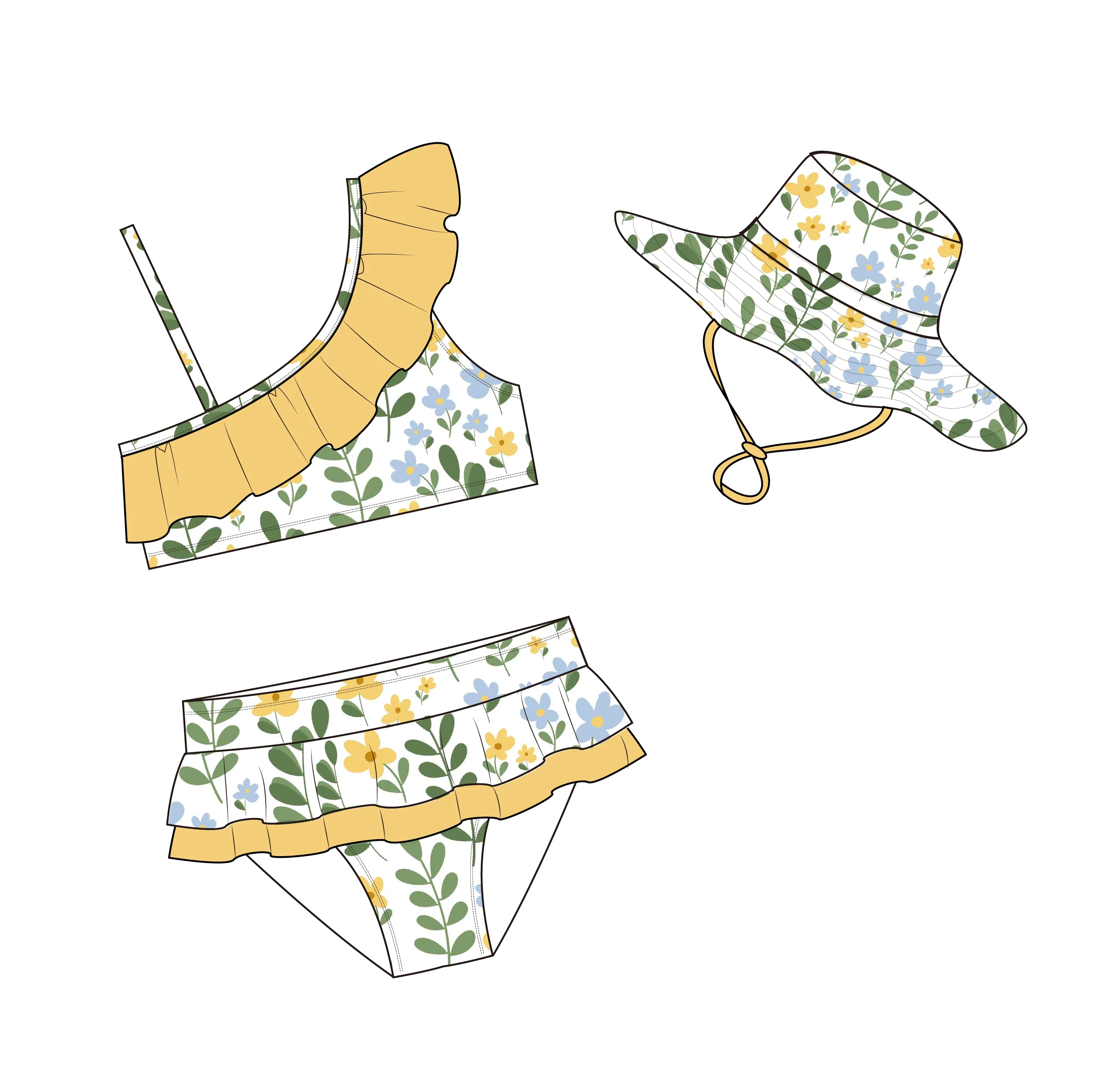 MLY Ruffle Bikini Summer Two Piece Suit Sexy Swimwear Bandage Biquini Triangle Swimsuit Printed Bathsuit